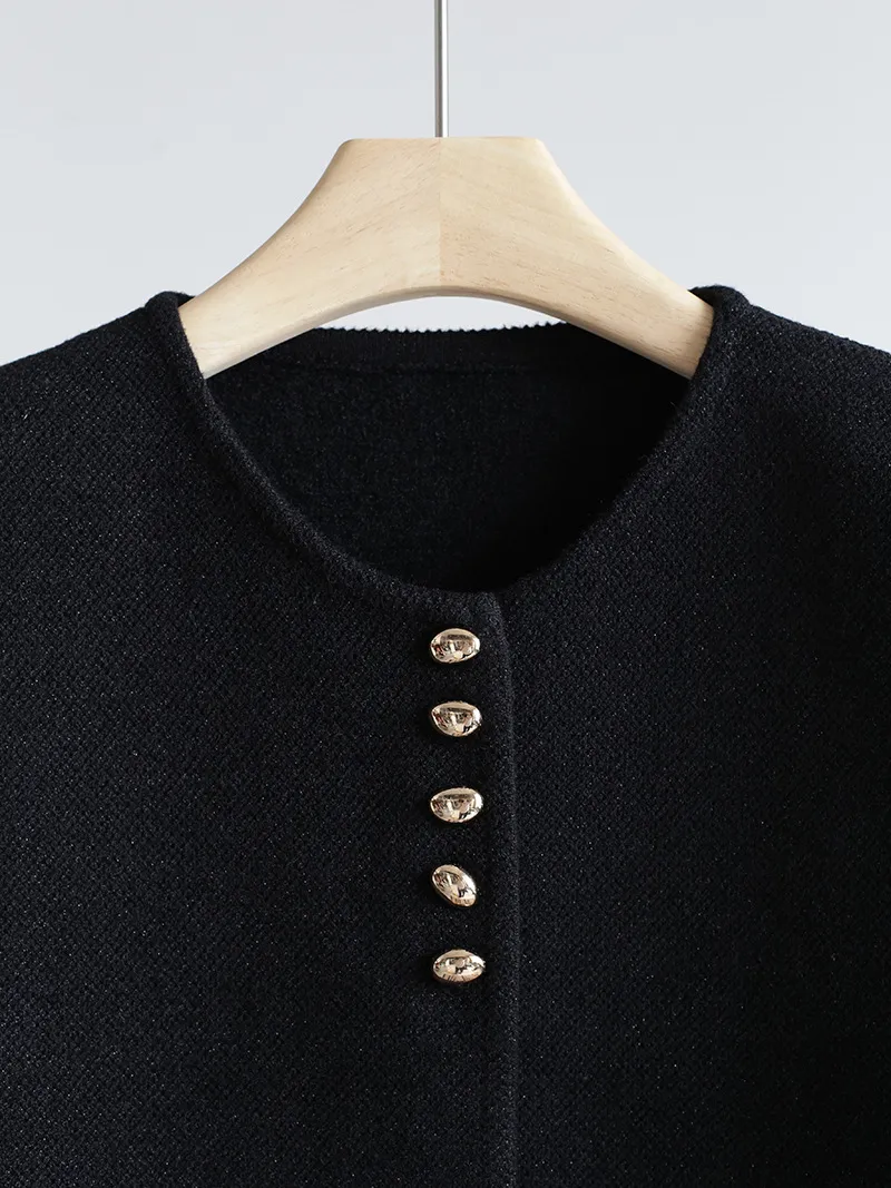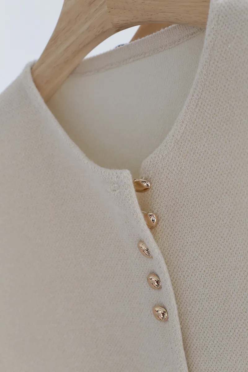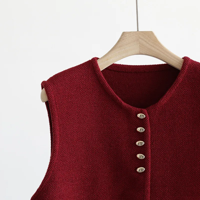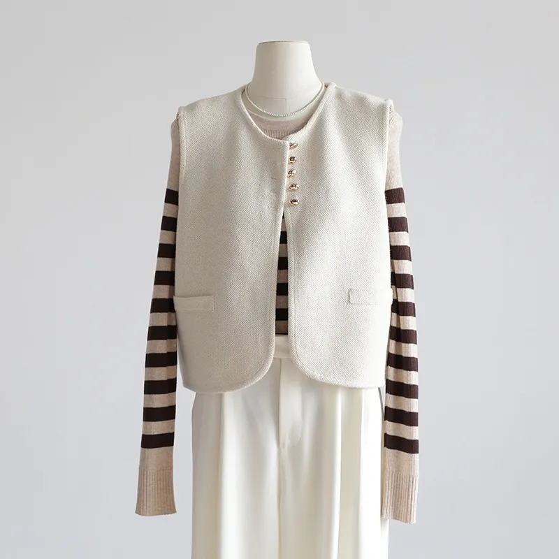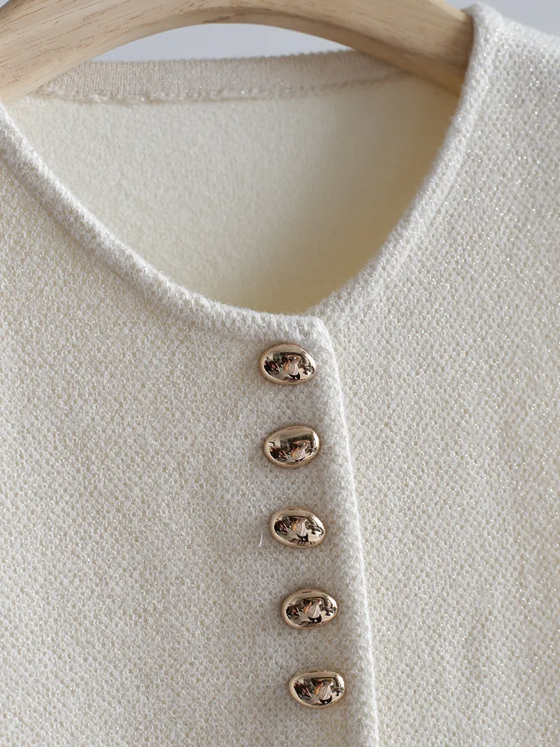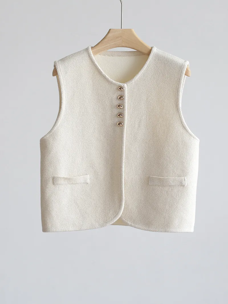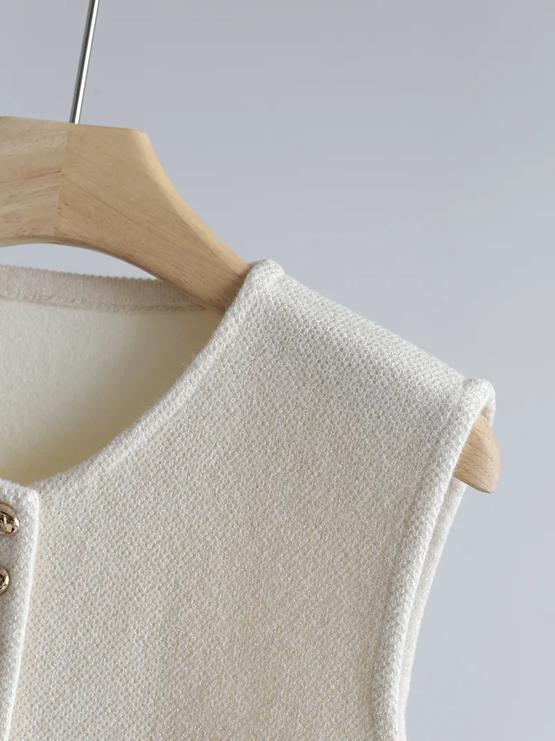 Static Luxury Old Money Style Round Neck Golden Bean Buckle Knitted Vest