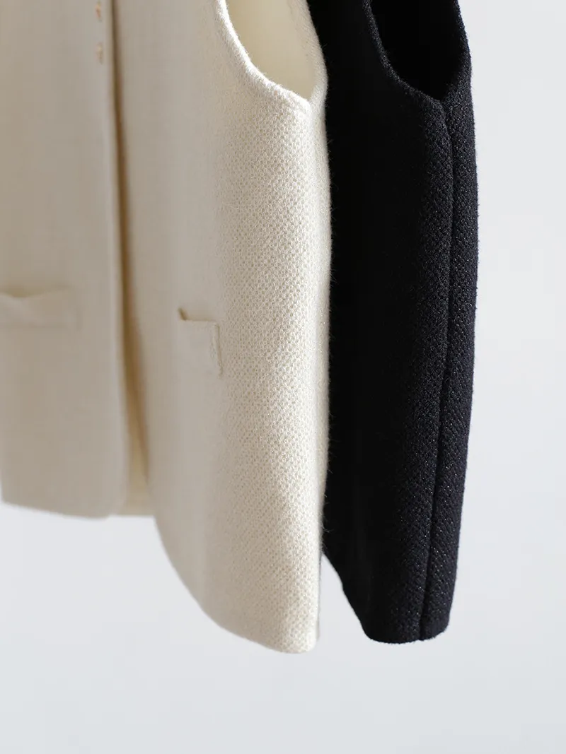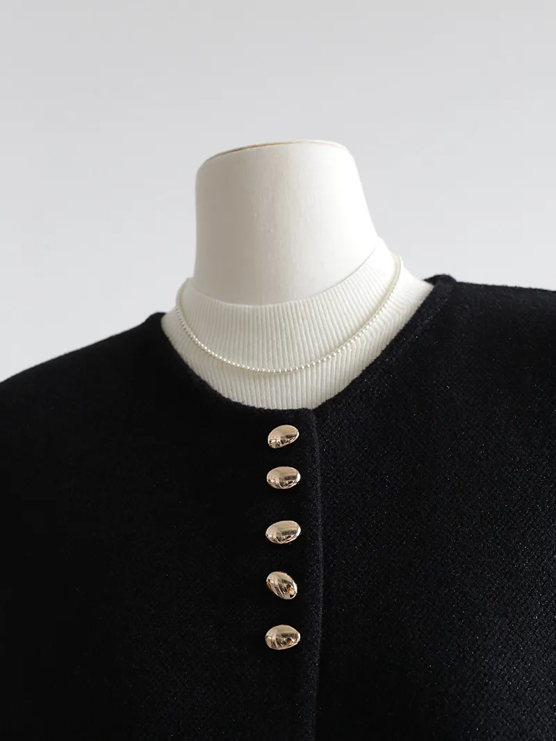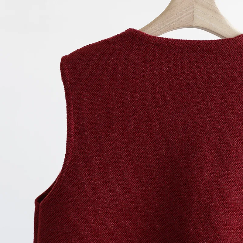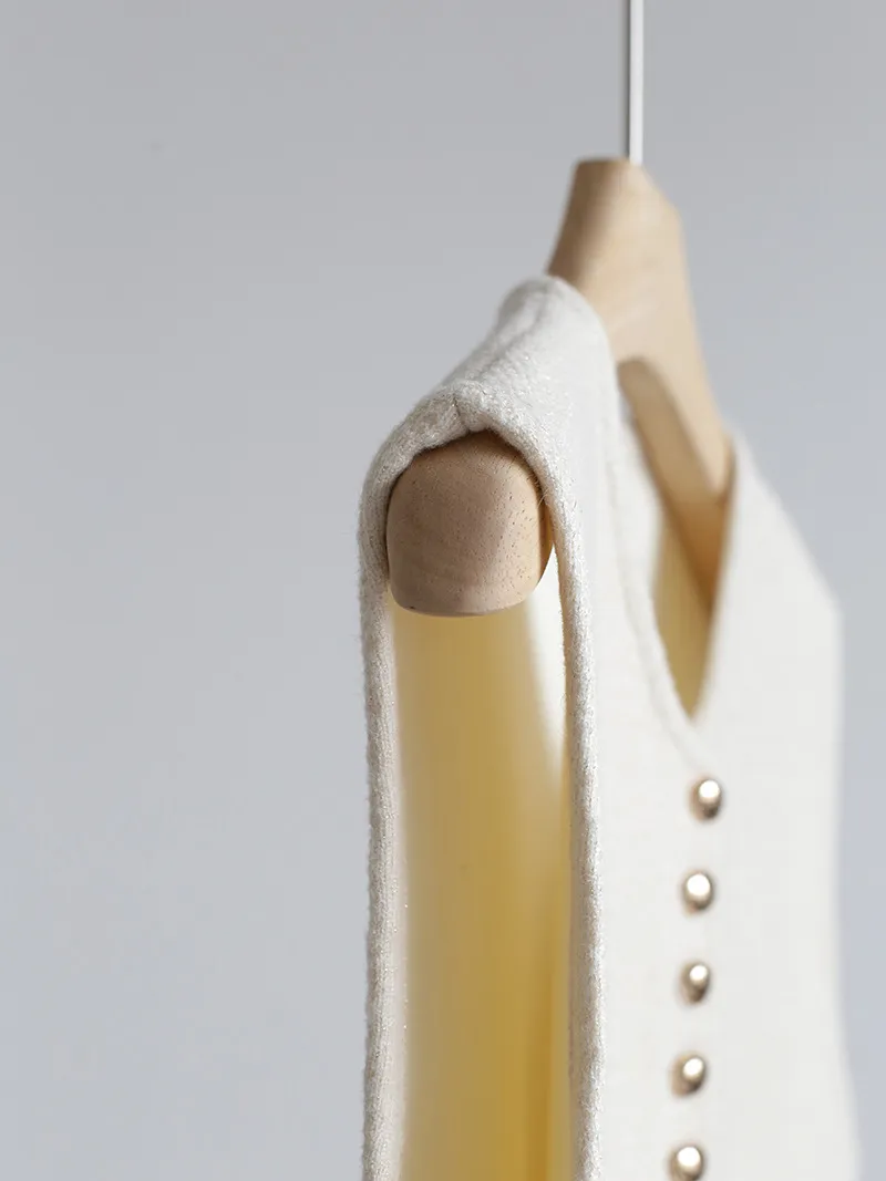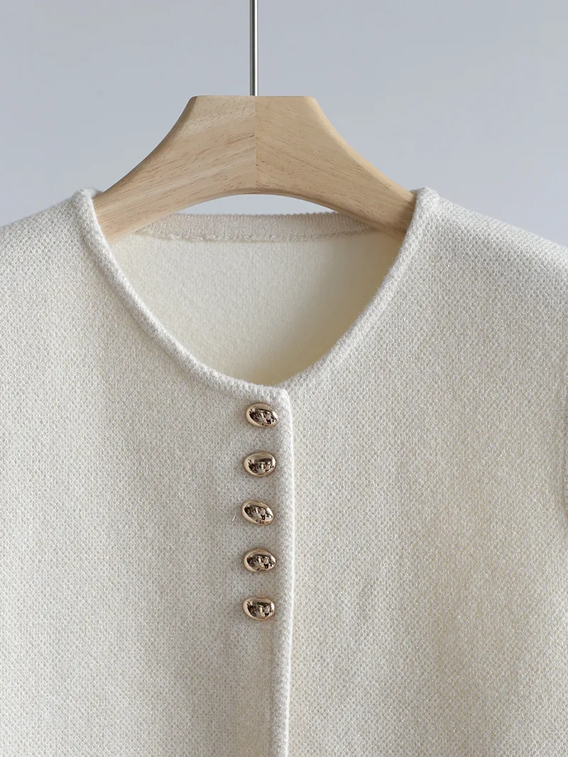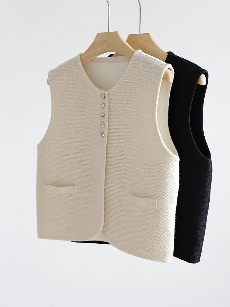 Static Luxury Old Money Style Round Neck Golden Bean Buckle Knitted Vest