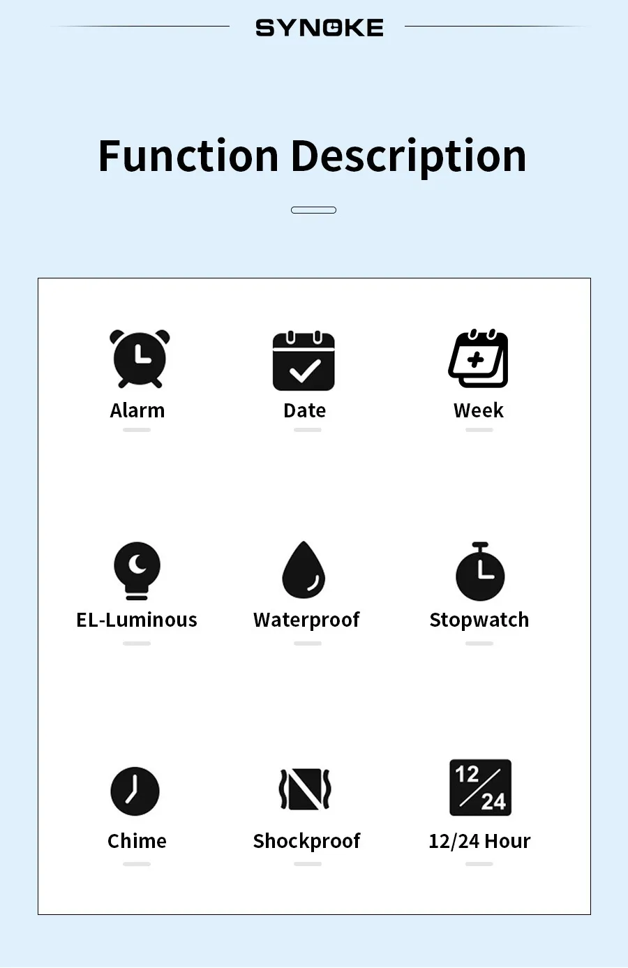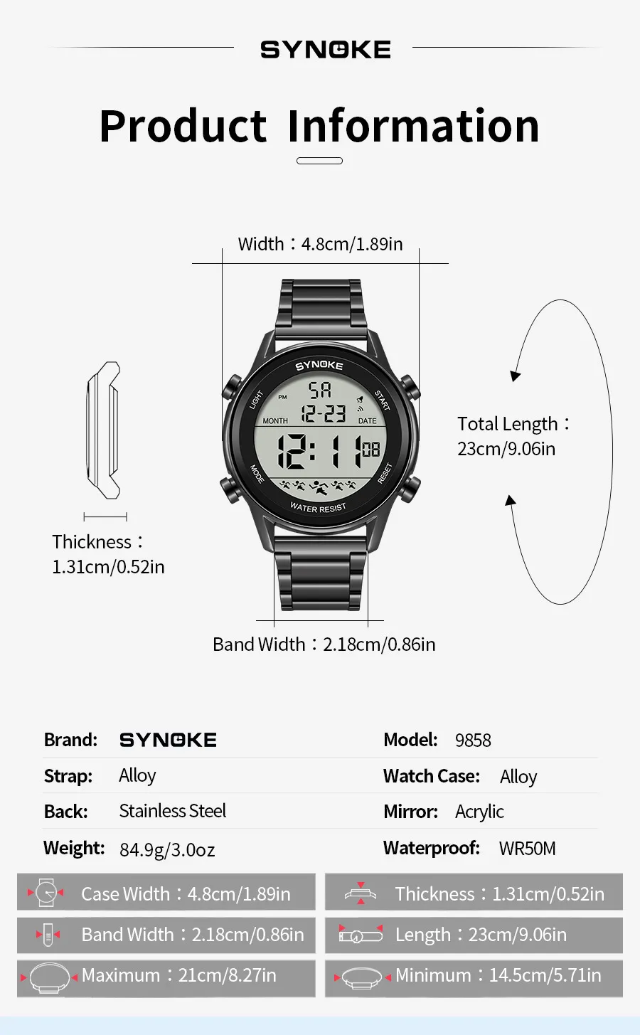 The Steel Belt Sports Electronic Watch is engineered to meet the demands of sports enthusiasts, offering a range of functions that make it suitable for various activities. Whether you're a runner, cyclist, swimmer, or hiker, this watch is packed with features to help you track your performance and stay on top of your fitness goals. Some of its key features include: