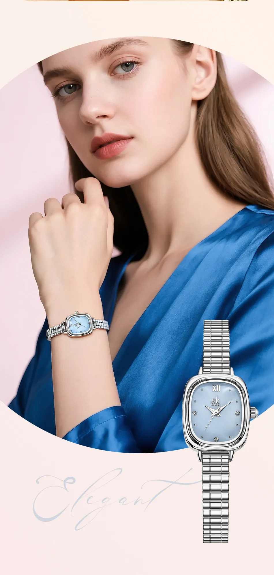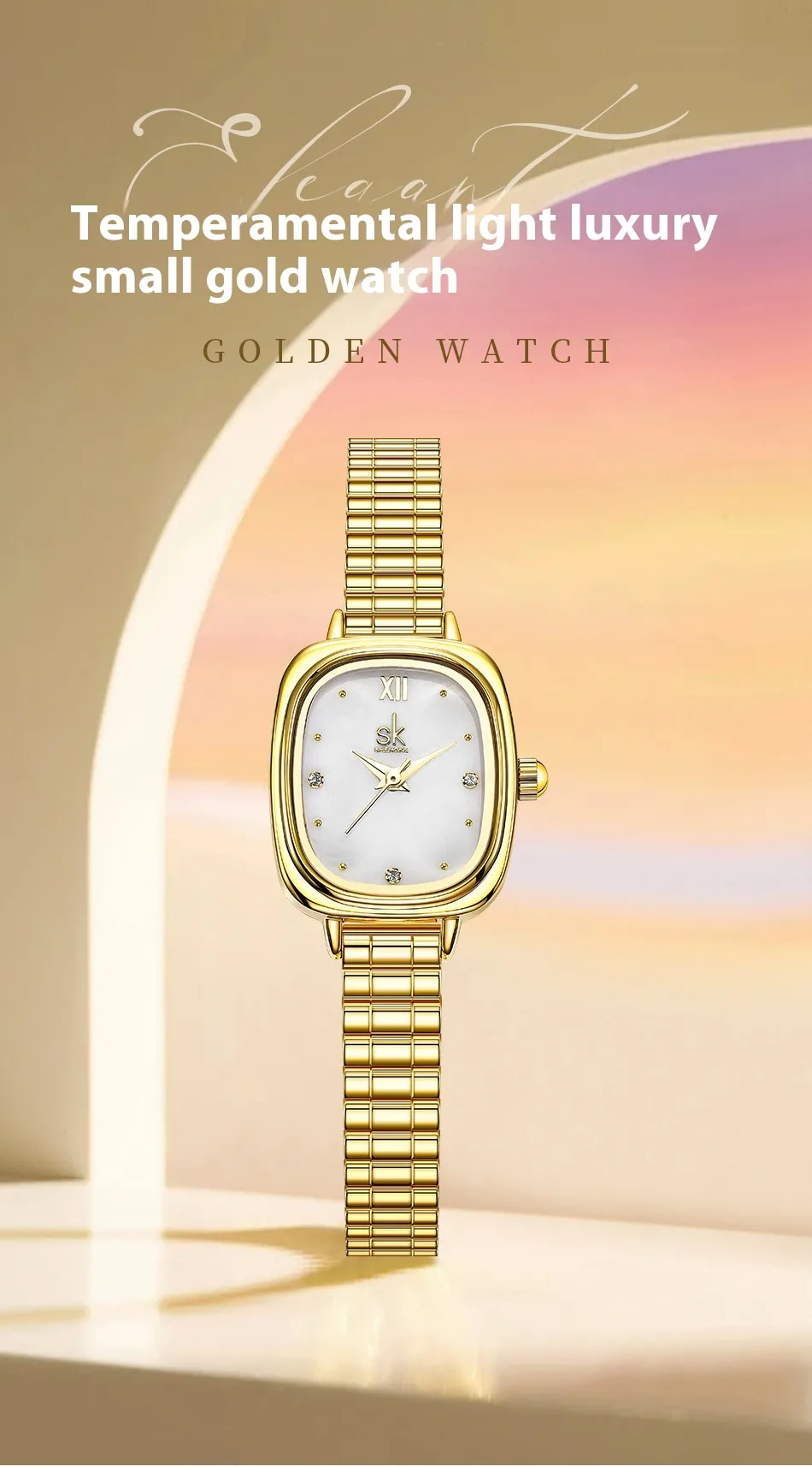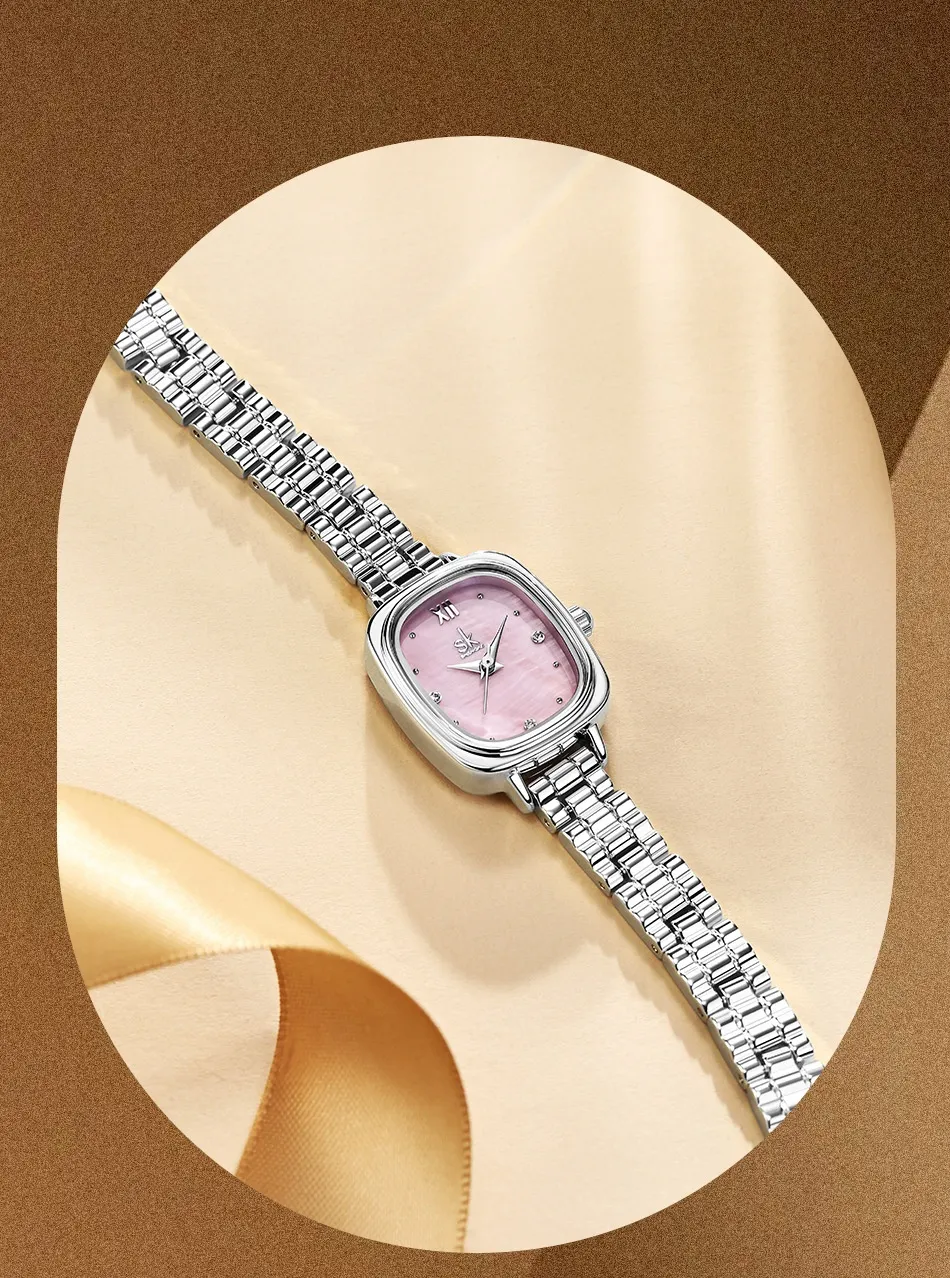 The small square dial is a key feature of this watch, offering a modern twist on traditional round watches. The sharp edges and clean lines of the square face give the watch a contemporary and sophisticated aesthetic, while the minimalist design ensures that it remains timeless and versatile. The compact size makes it perfect for those who prefer a subtle and chic accessory that adds elegance without overwhelming their wrist.