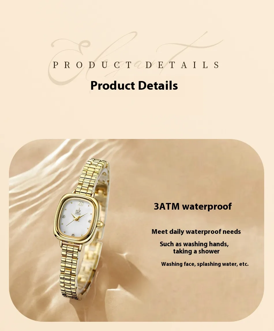 With its stainless steel construction, quartz movement, and water-resistant design, the Steel Belt Waterproof Quartz Small Square Watch is a versatile and reliable timepiece for anyone seeking a combination of luxury and practicality in a compact, stylish package.