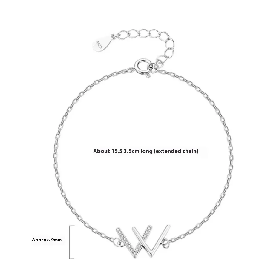 Sterling Silver W Letter Bracelet Women's Simple Niche