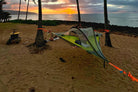 The Stingray uses a unique 3-point anchoring system to create tension, giving you a taut fabric base to sleep on. The tent floor has the perfect amount of "give" to cushion and cradle your body, giving you the most comfortable night's sleep you've ever had in a tent or hammock.
