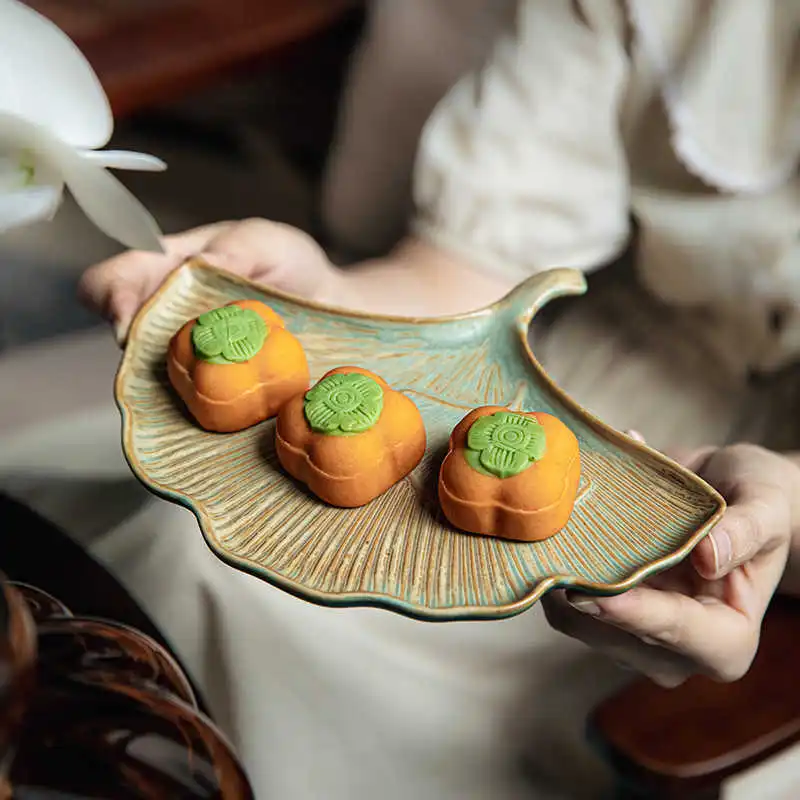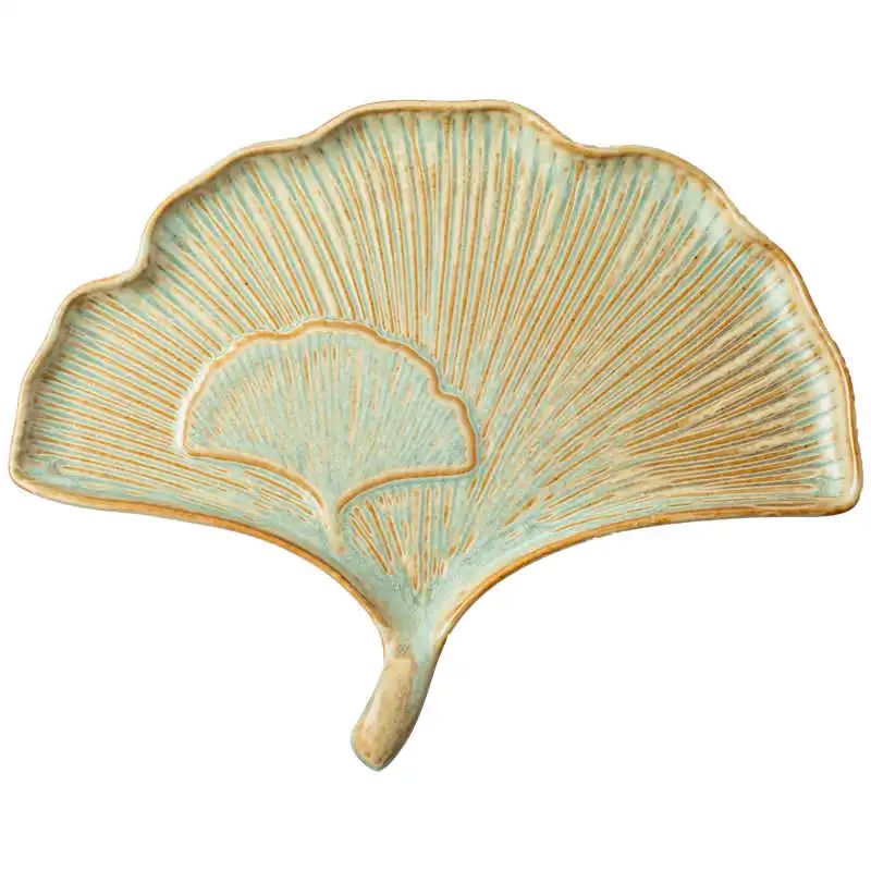 Stoneware 8-inch Ginkgo Leaf Fan-shaped Plate