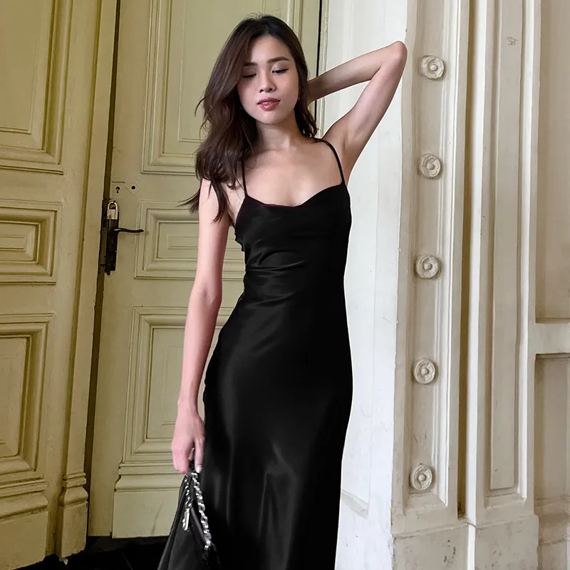 Strap Satin A Swing Backless Dress Women