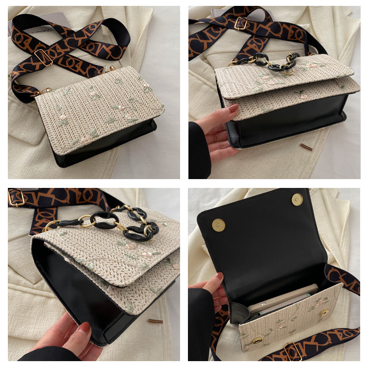 Straw Square Bag with Acrylic Chain