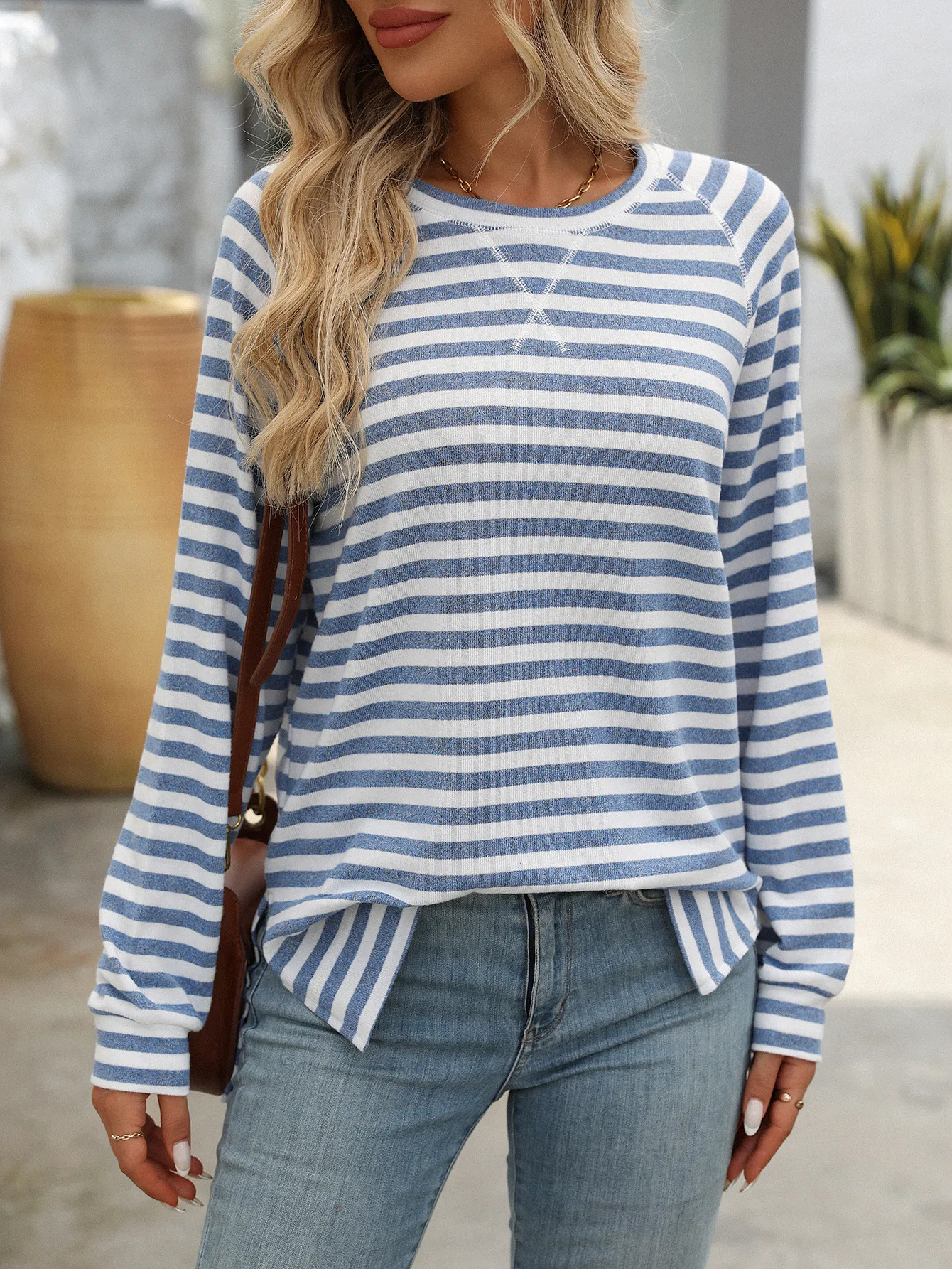 body types. The round neck and long sleeves provide a relaxed yet polished look, making it a perfect choice for everyday wear.