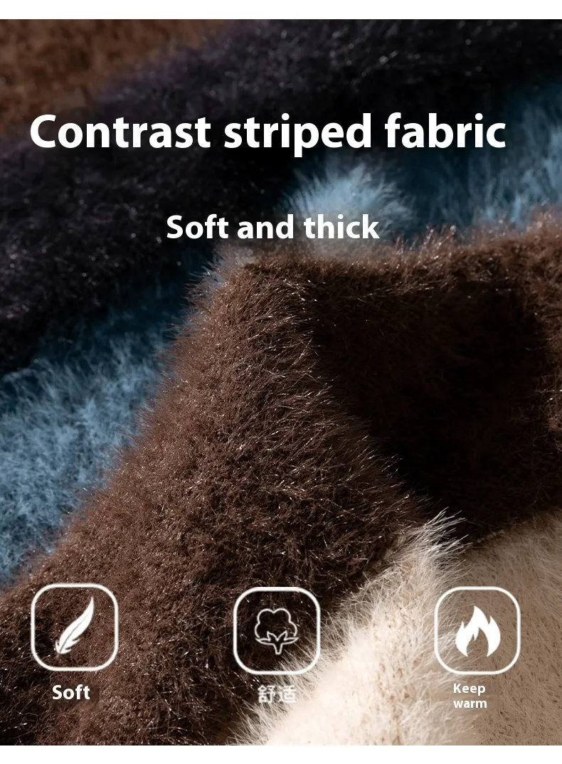 Introducing the Striped Round Neck Sweater in Japanese-style Retro Mink—a stunning piece that effortlessly combines timeless design with contemporary flair. This sweater is not just an addition to your wardrobe; it’s a versatile staple that offers both style and comfort, making it perfect for any occasion. With its chic stripes and soft texture, this sweater captures the essence of retro fashion while remaining relevant for today’s trends.