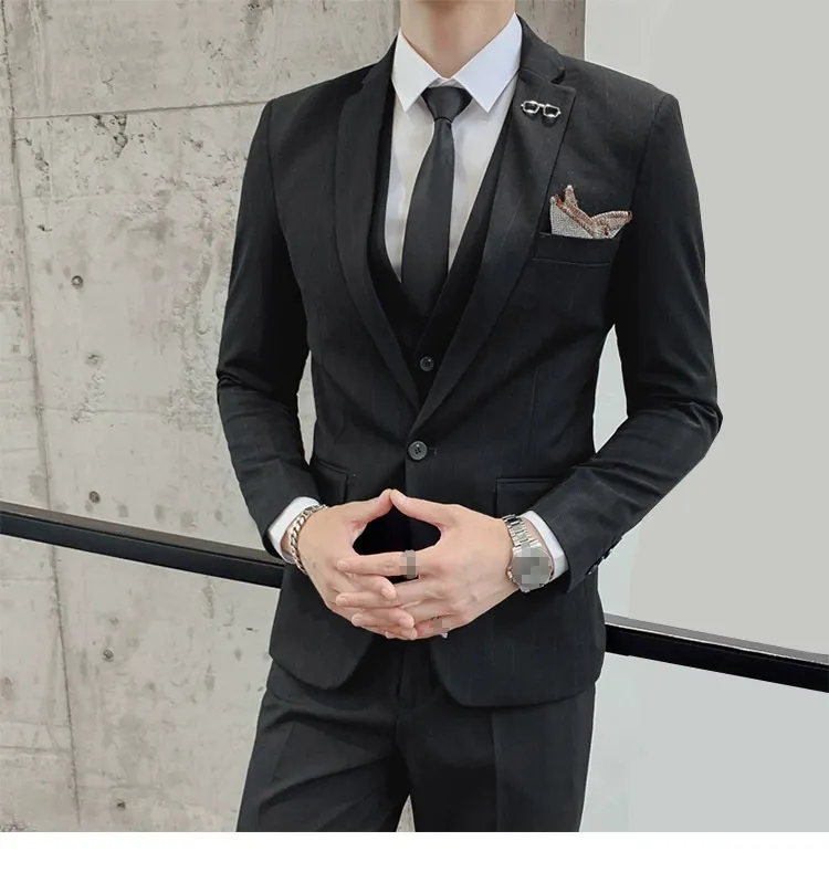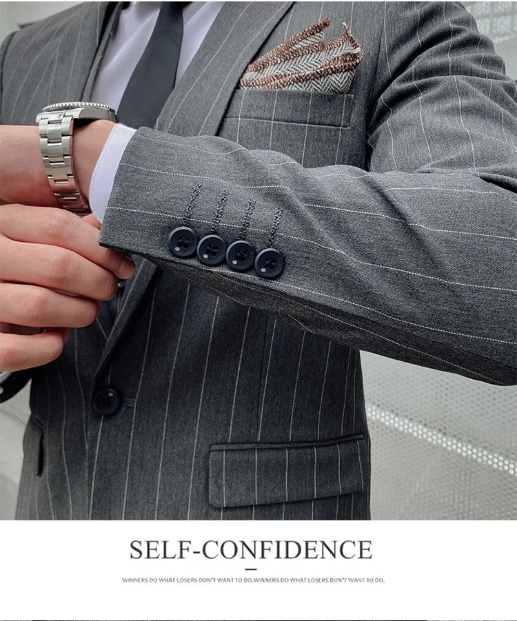 The Striped Suit Men’s Korean Style Small Suit is perfect for a wide range of settings, from formal business meetings to semi-formal gatherings. Its modern yet classic style ensures it adapts effortlessly to any environment.