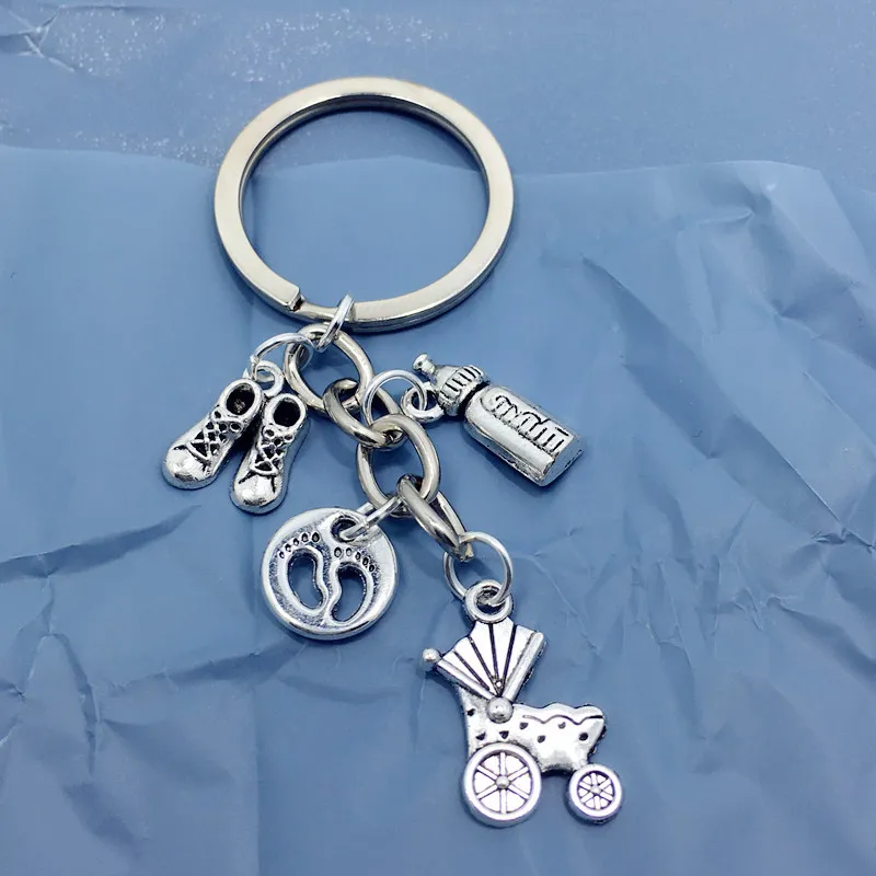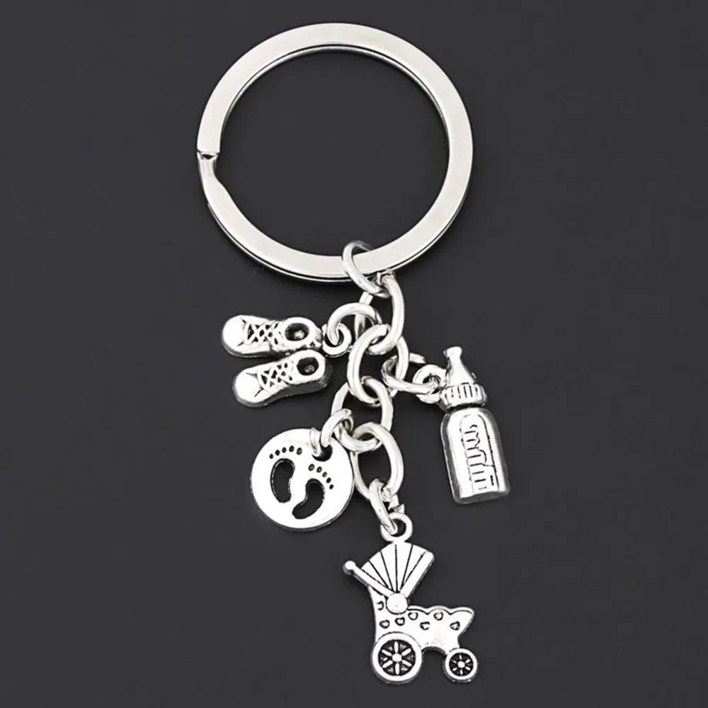 Stroller Baby Bottle Footprint New Mother's Memorial Keychain