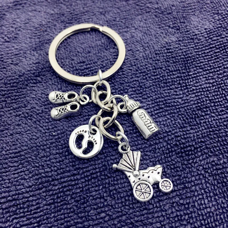 Stroller Baby Bottle Footprint New Mother's Memorial Keychain