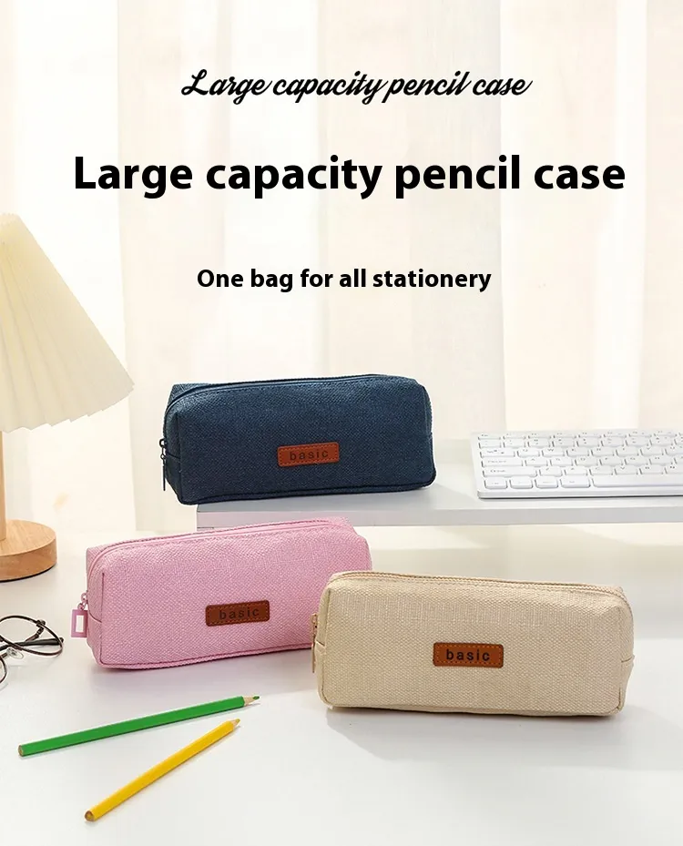 Student Single-layer Large Capacity Solid Color Square Cotton And Linen Pencil Box