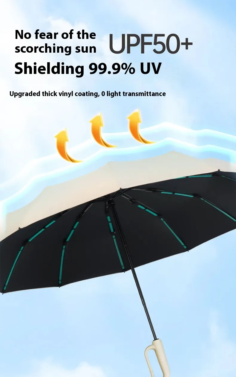 The ergonomic handle and ring buckle design simplify carrying and storage, making the umbrella practical for daily commuting and travel.