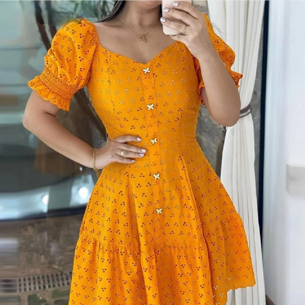 Stylish Women's Short Sleeve Waist-Controlled Hollow Dress, Trendy and Elegant