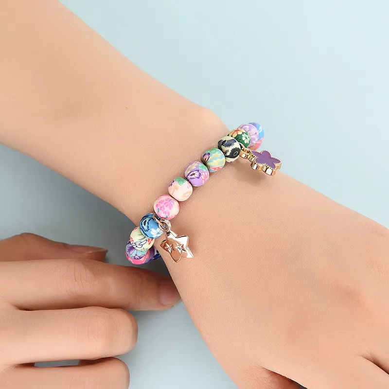 The Suebito Bracelet Painted Flowers Suebito Bead Bracelet is the perfect choice for anyone looking to add a burst of color and creativity