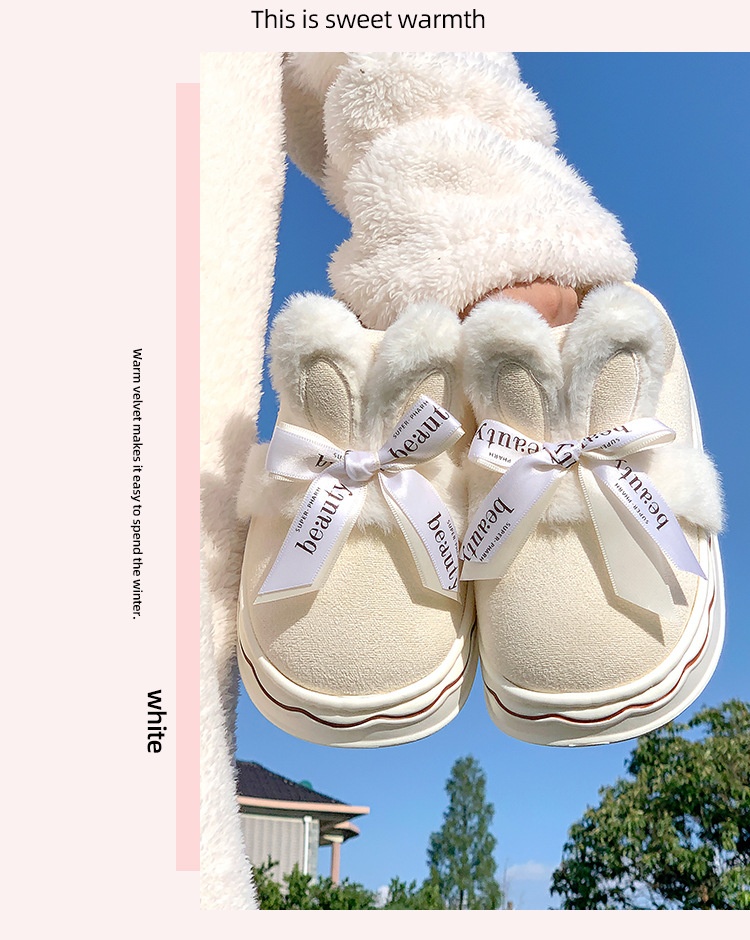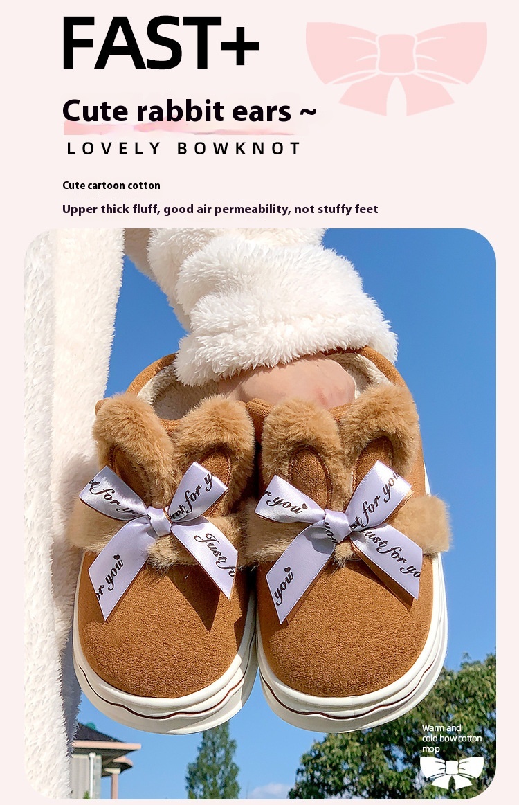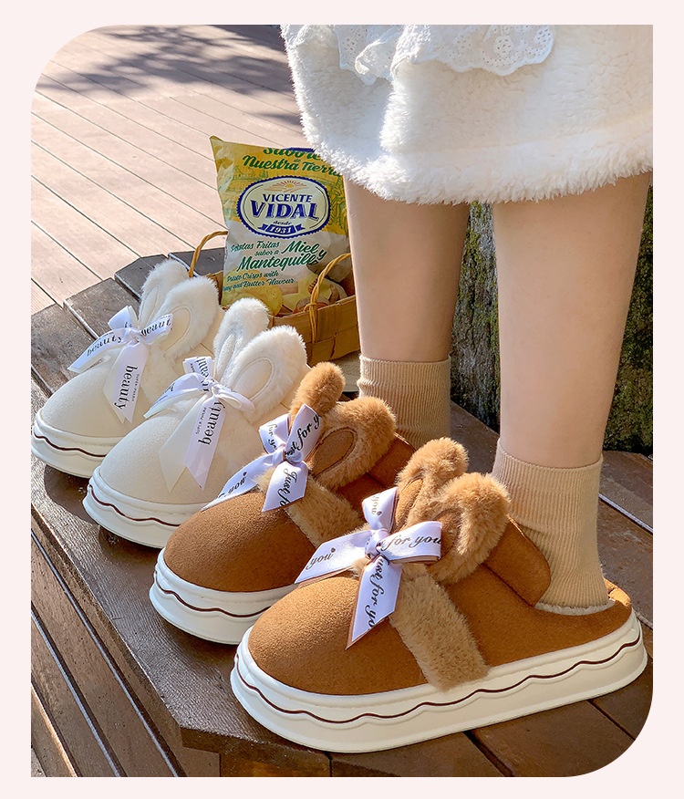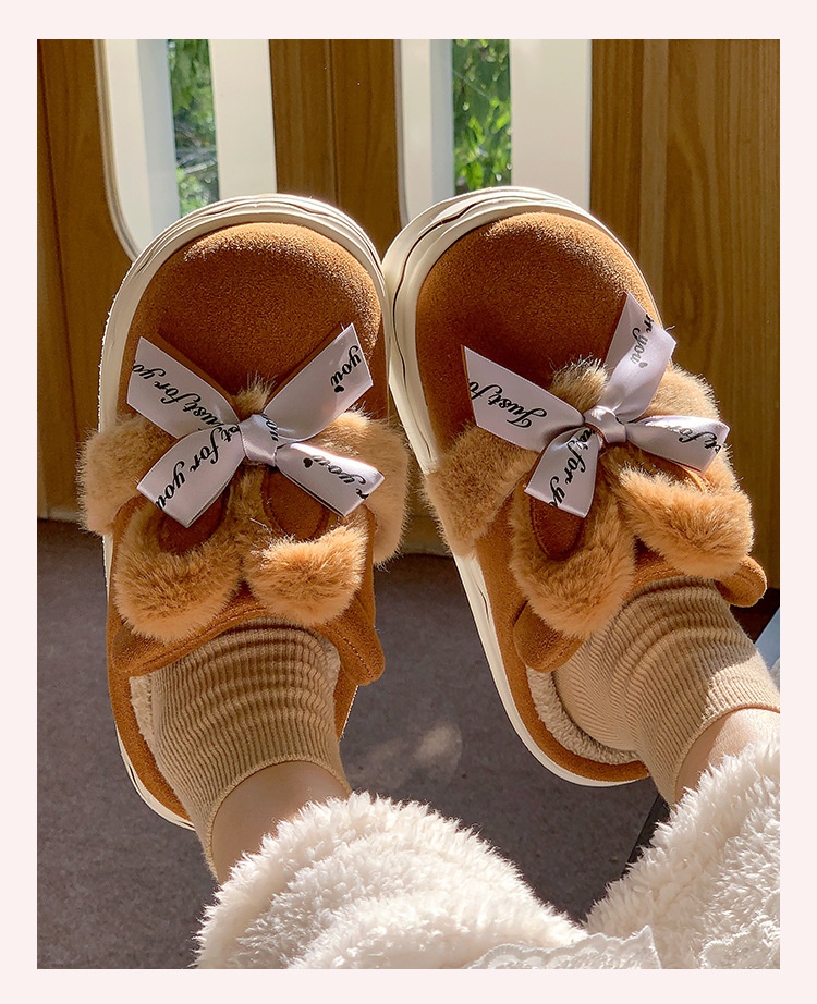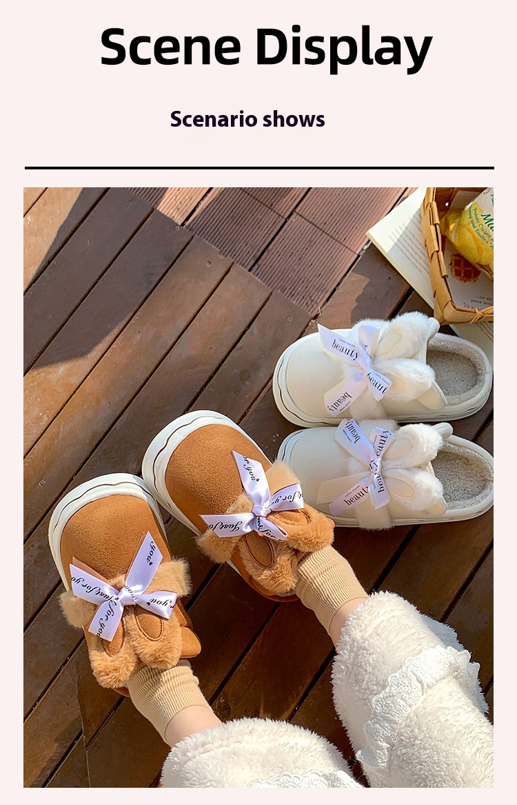 Suede Cotton Slippers Women's Home Bow Cotton Slippers