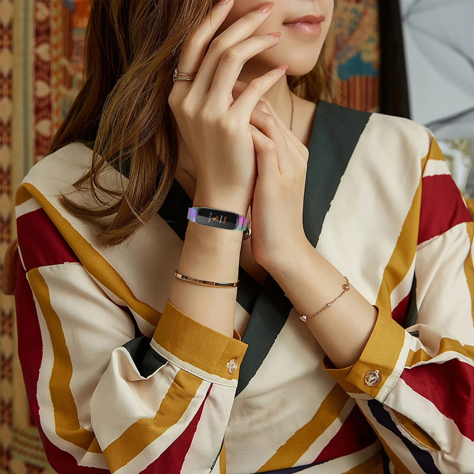 Upgrade your Inspire3 smartwatch with this Milanese-style metal watch band. The premium stainless steel mesh offers a sleek, modern look, combining style and durability. Perfect for daily wear, office settings, or special occasions, it enhances the overall appearance of your smartwatch.