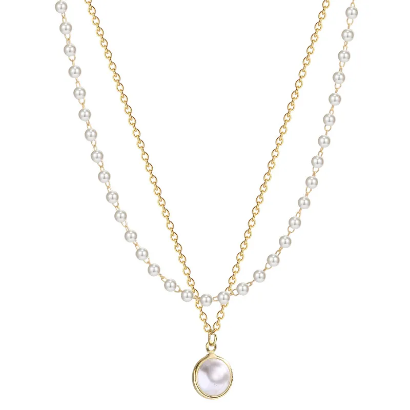 Summer Double-layer Pearls Necklace INS Fashion Clavicle Chain Necklace Jewelry For Beach