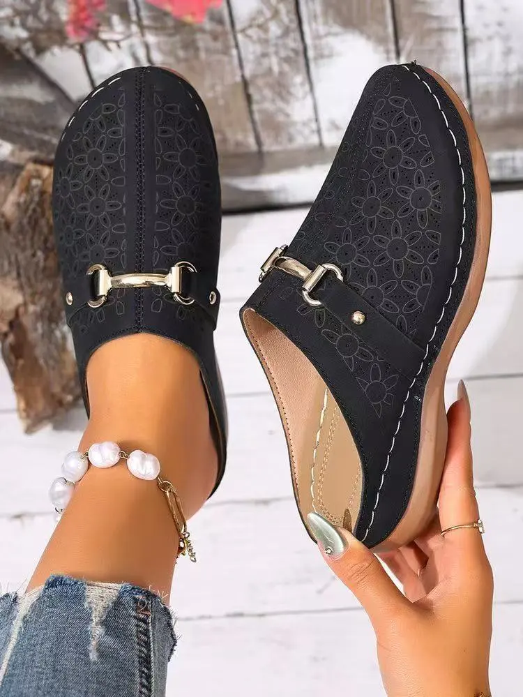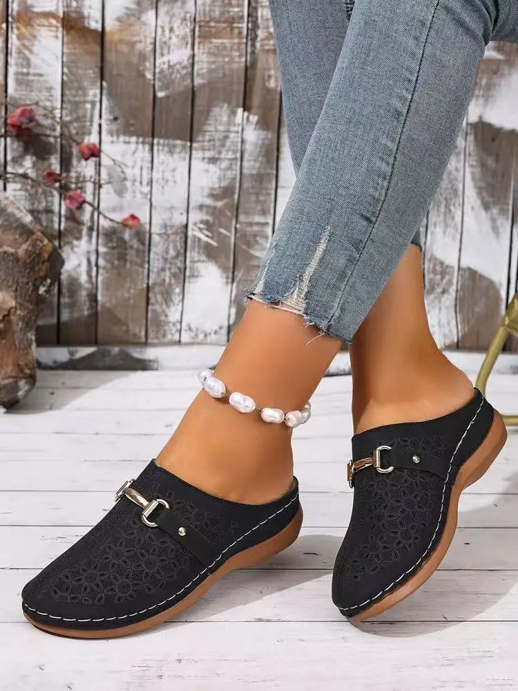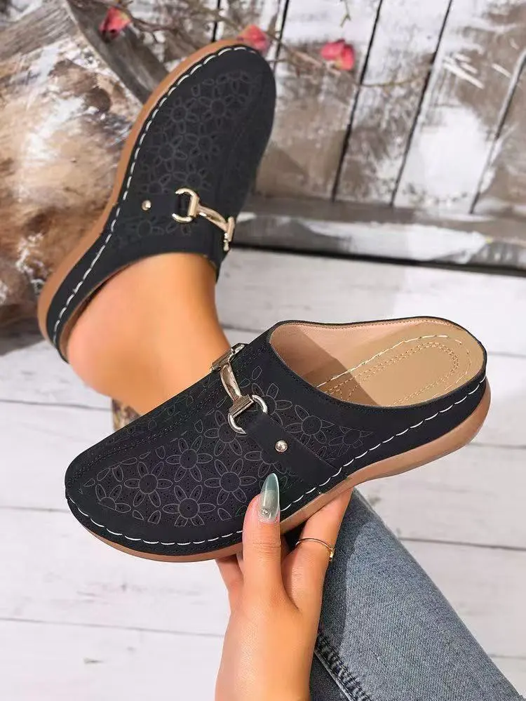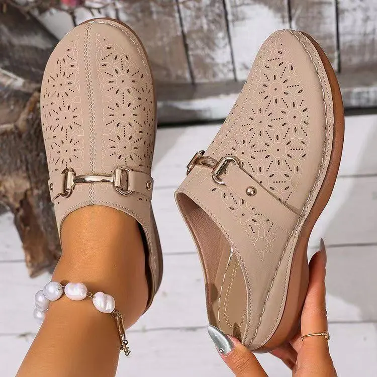 Step into summer with style and comfort with these Summer New Closed Toe Metal Buckle Hollowed Women’s Shoes, designed for New Zealand women who love breathable, trendy, and practical footwear. Perfect for casual outings, work, or weekend strolls, these shoes combine elegance and comfort in one versatile design.