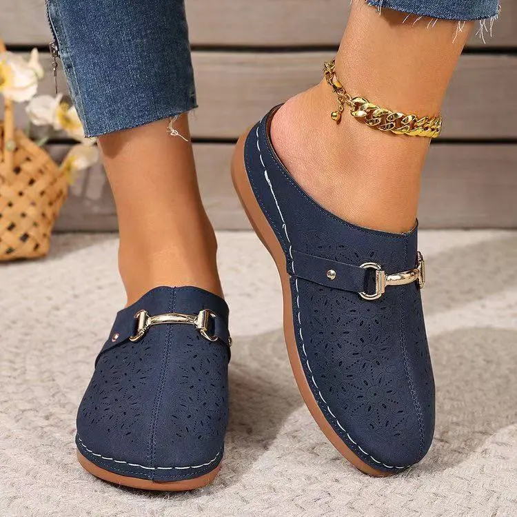 Summer New Closed Toe Metal Buckle Hollowed Women's Shoes