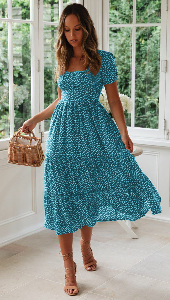 Summer Puff Floral Printed Long Dresses