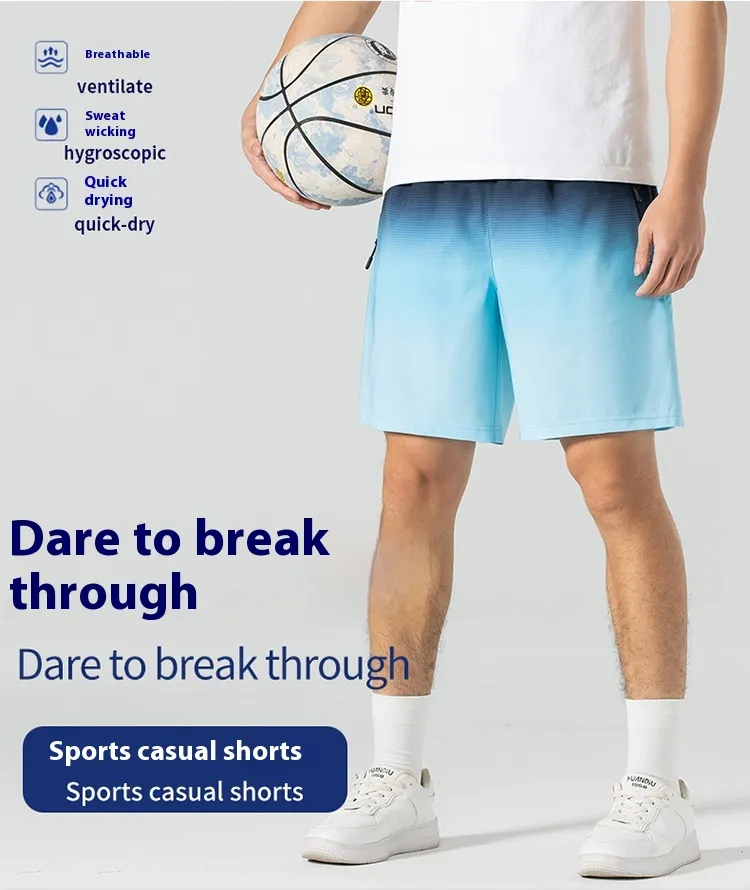 Summer Thin Ice Silk Shorts Men's Gradient Sports Beach Pants