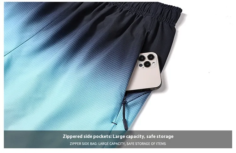 The Summer Thin Ice Silk Shorts Men's Gradient Sports Beach Pants are the perfect choice for those who want both comfort and style in their summer wardrobe. The cooling ice silk fabric ensures that you stay comfortable during hot days, while the trendy gradient design adds a fashionable flair to your look. Whether you're engaging in sports, lounging at the beach, or enjoying casual outings, these shorts offer the perfect combination of style, breathability, and performance.