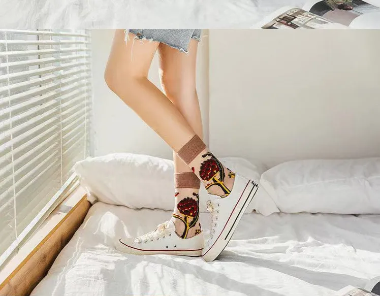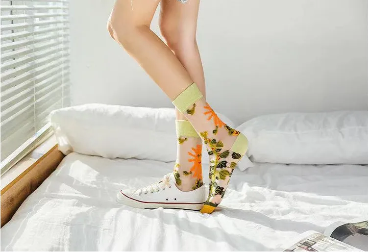 They’re ideal for wearing with a flowy summer dress for a laid-back look or paired with a skirt for a more polished appearance. The sunflower detailing adds personality and flair, making these stockings a fashionable choice for all your warm-weather outfits.