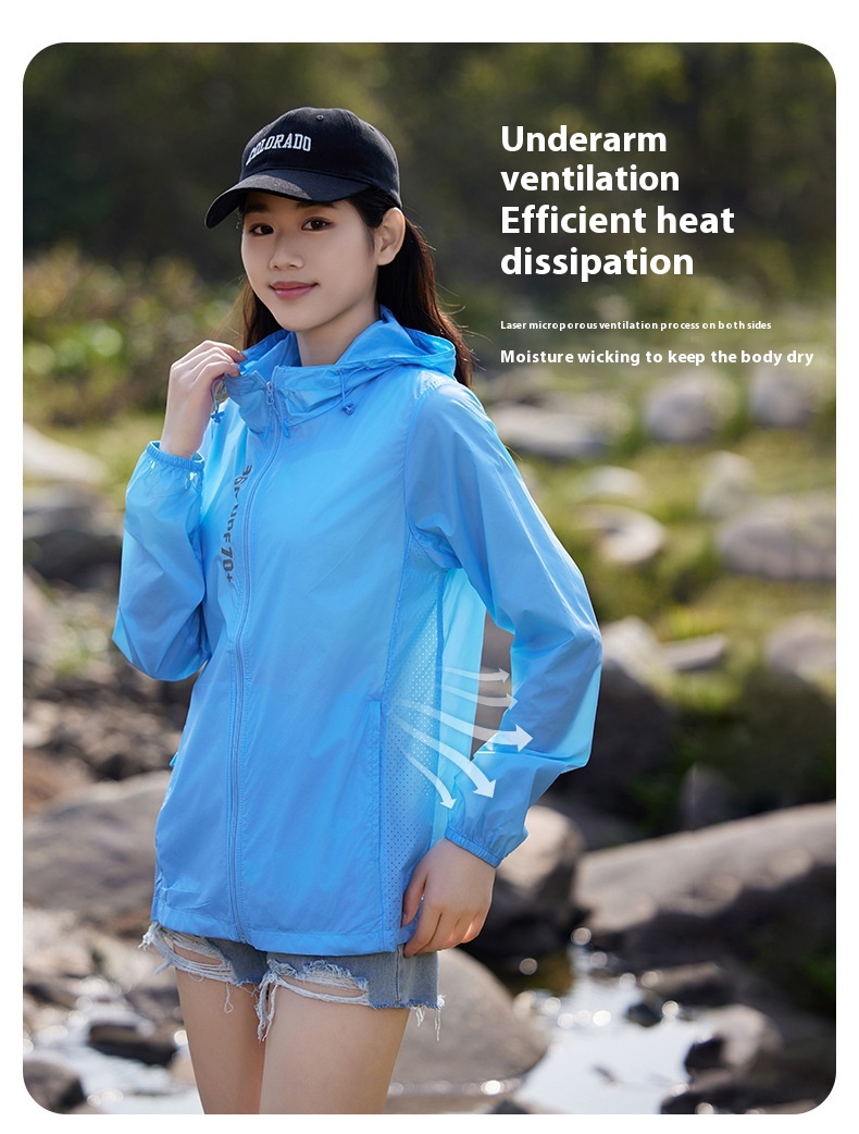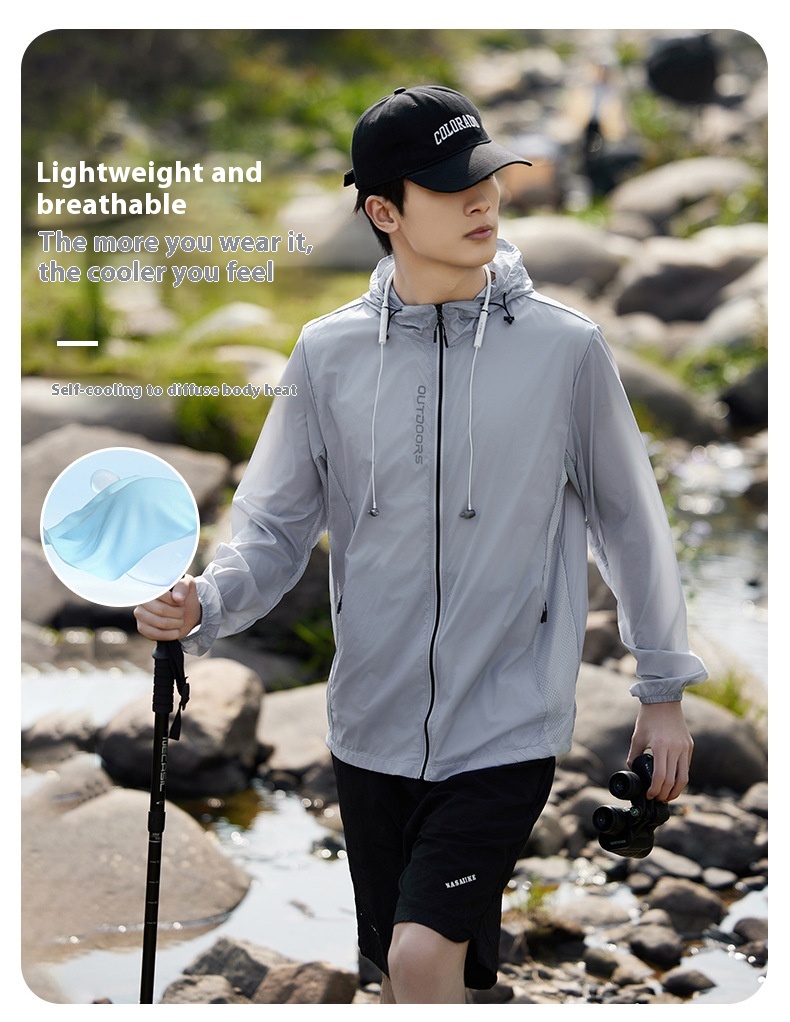 Crafted from premium ice silk fabric, this jacket is incredibly lightweight and breathable. The advanced material ensures excellent moisture-wicking and quick-drying properties, keeping you cool and dry even on the hottest days. The jacket’s hood provides additional protection for your head and neck, making it perfect for extended outdoor activities.