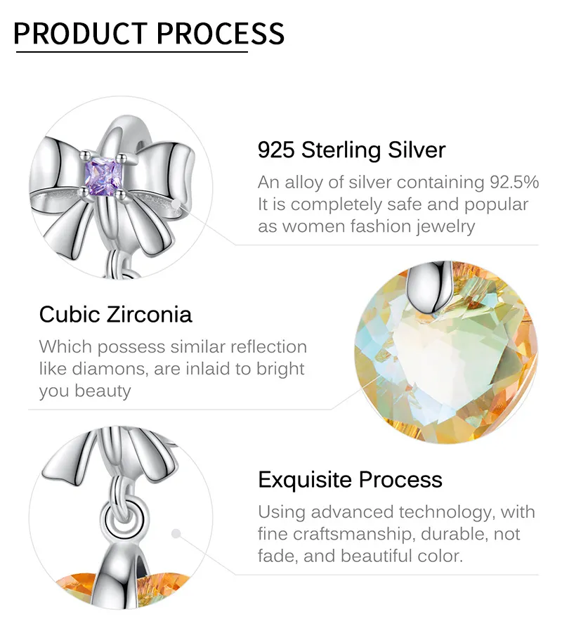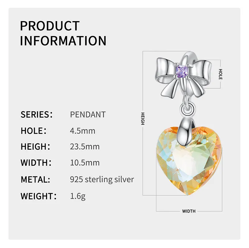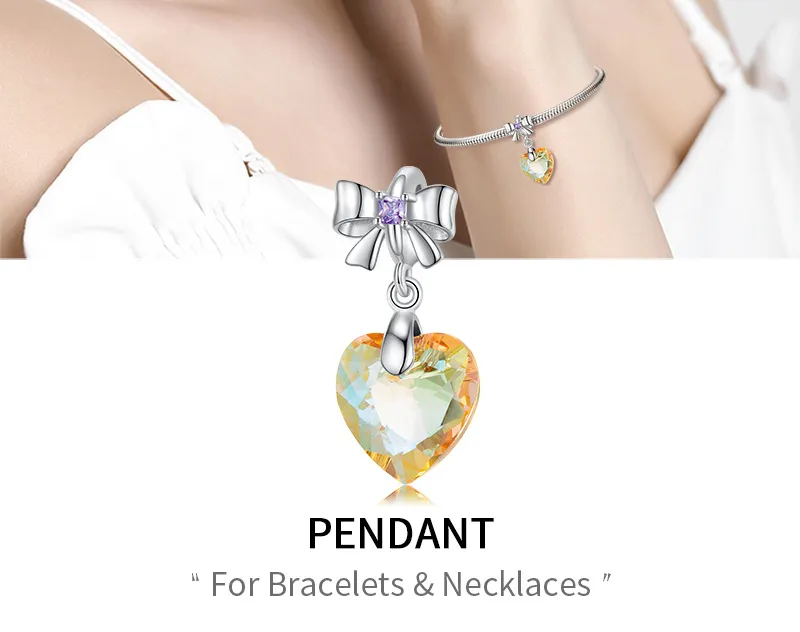 Sunshine Golden Yellow Heart Crystal Pendant Sterling Silver 925 Bow Necklace Bracelet Diy Pendant