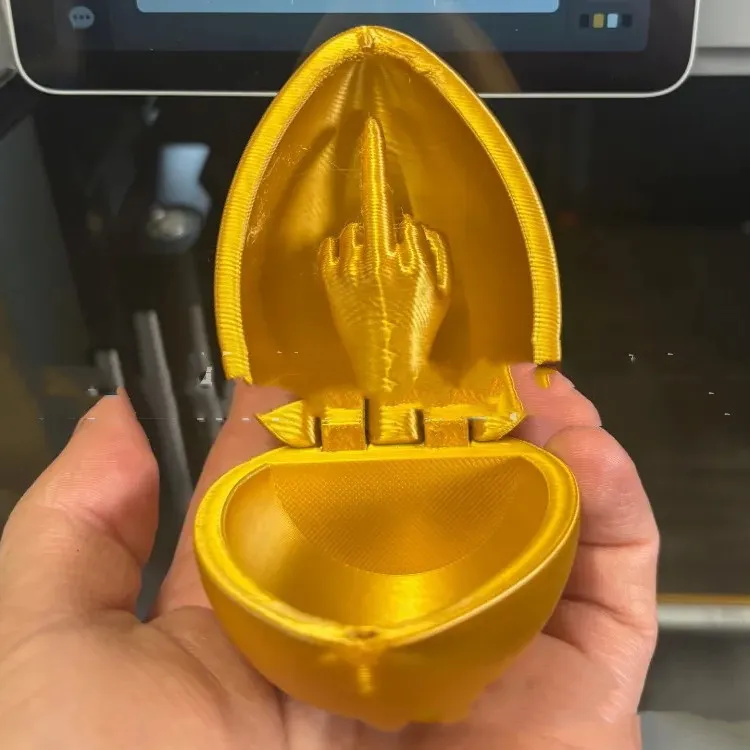 - Design: An egg-shaped container that holds a hidden middle finger, ready to surprise