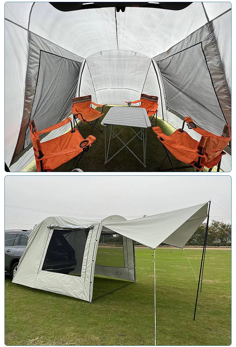 An SUV tent is a specially designed shelter that attaches to the rear of your SUV, minivan, or crossover vehicle. It creates a spacious, weather-resistant area that extends your vehicle's interior, allowing you to sleep comfortably, store gear, or even set up a small kitchenette. These tents are particularly popular among families, overlanders, and road-trippers who seek the convenience of vehicle access combined with the experience of camping outdoors.