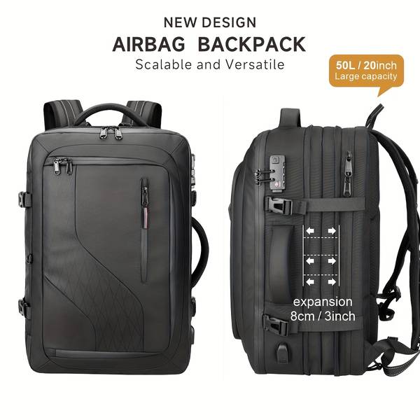 With the Vacuum Pump & AirBack Compression System, this backpack allows you to store more items in a smaller space. Whether you're packing for a business trip or a weekend getaway, you’ll be able to carry everything you need without worrying about bulky luggage.