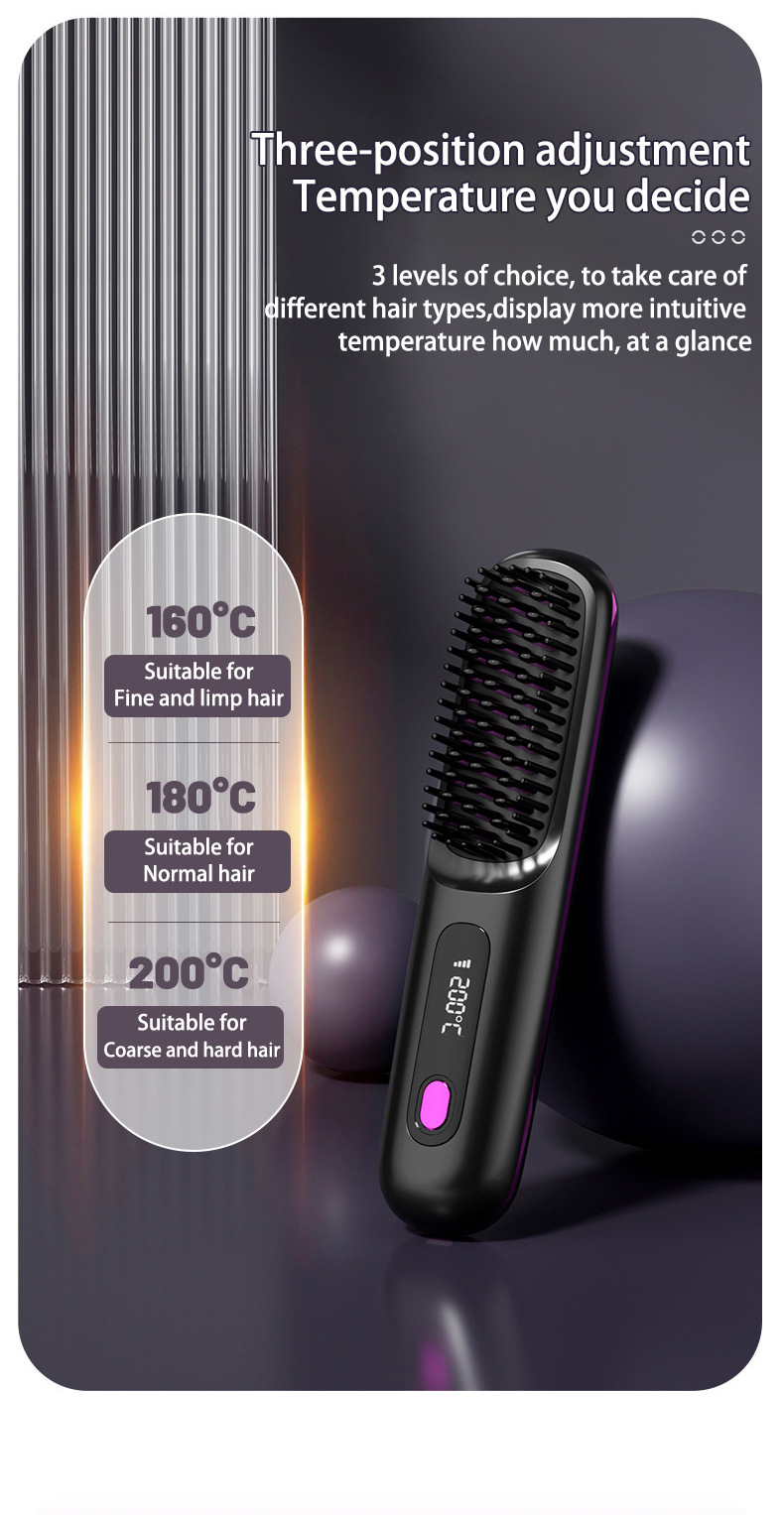 Effortless and Efficient Styling: Our wireless hair straightener brush features advanced heating technology that quickly reaches your desired temperature, ensuring fast and effective styling. The brush design allows for easy gliding through your hair, straightening it while also detangling and smoothing your locks.