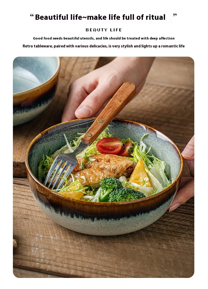 Tableware 65-inch Noodle Bowl Retro Ceramic Bowl
