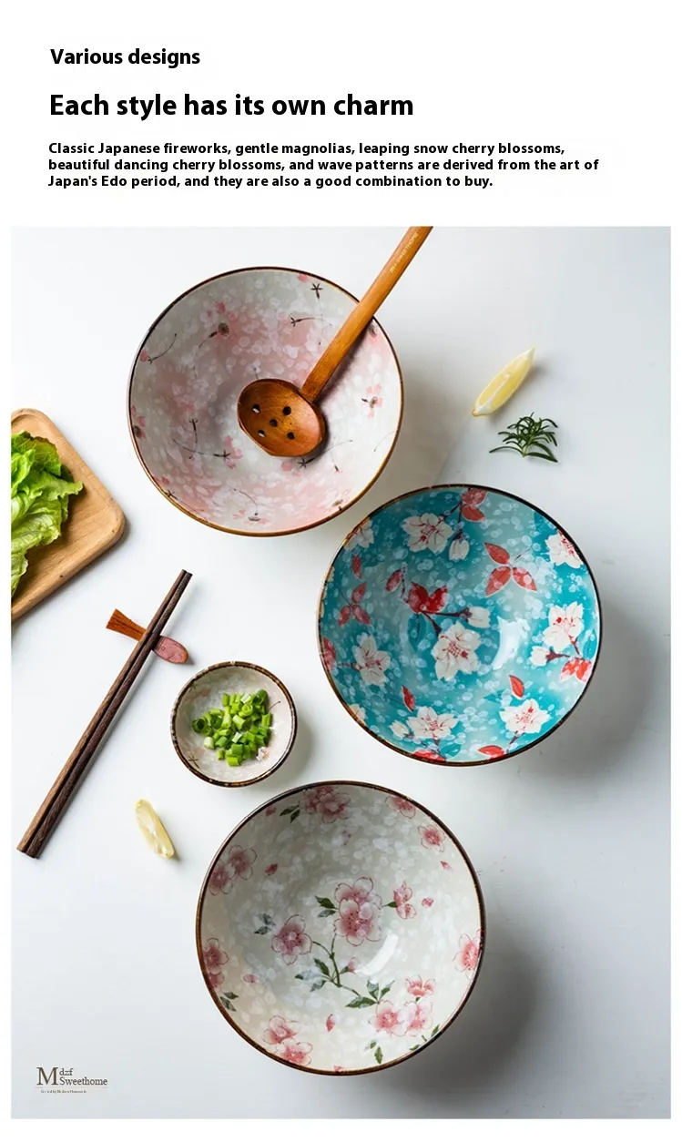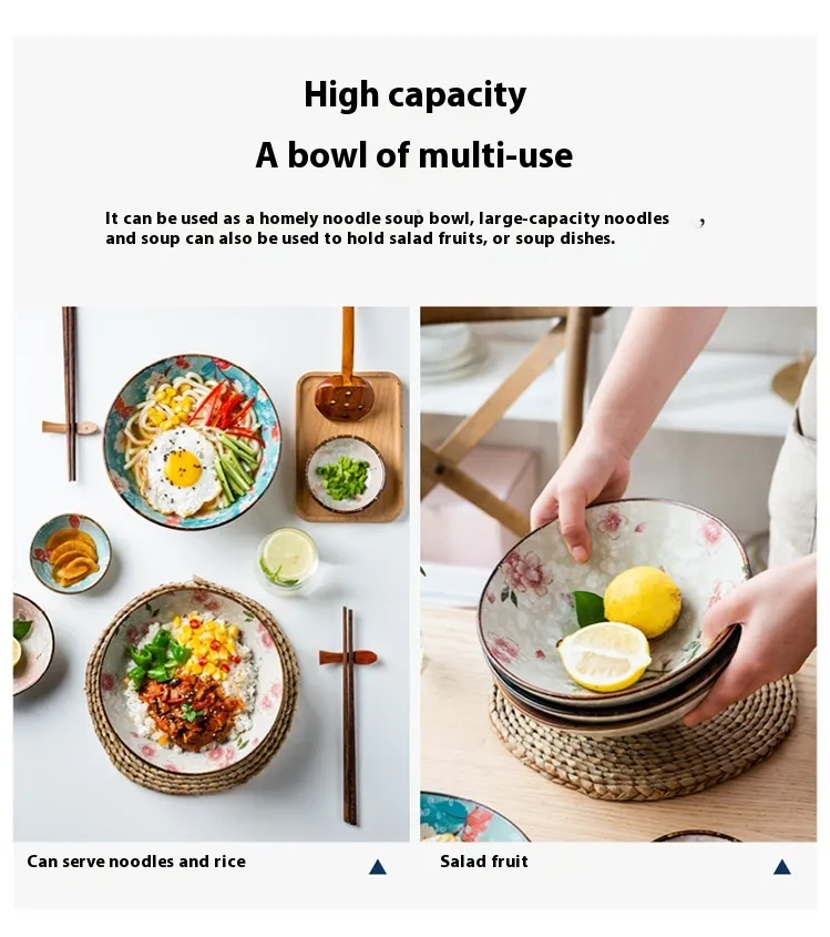 Color: Snowflake glaze Cherry Blossom 8-inch noodle bowl, waving cherry blossom 8-inch noodle bowl, snowflake glaze Magnolia 8-inch noodle