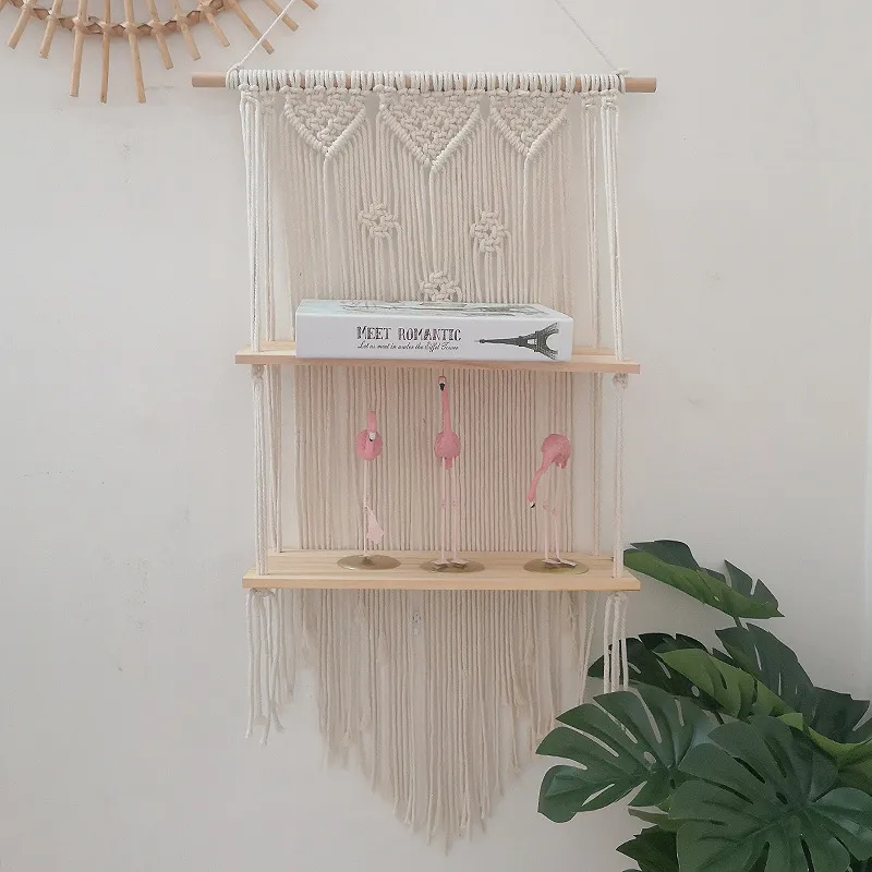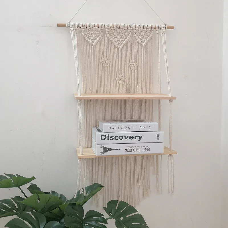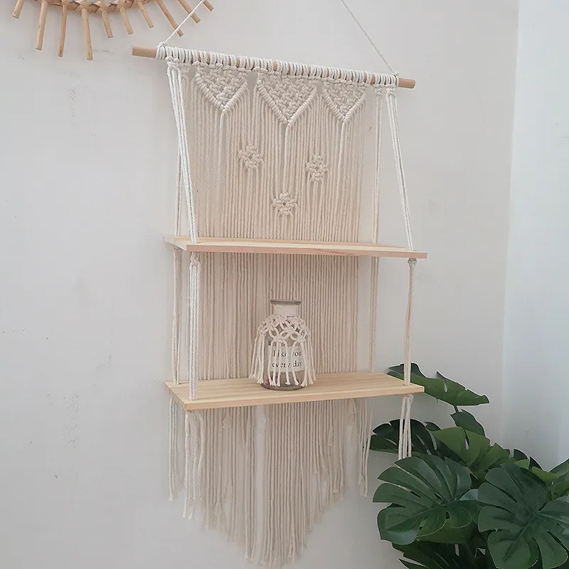 Tapestry Two-Layer Shelf Hand-Woven Nordic Bohemian DIY Wall Shelf: A Stylish Addition to Your Home Décor