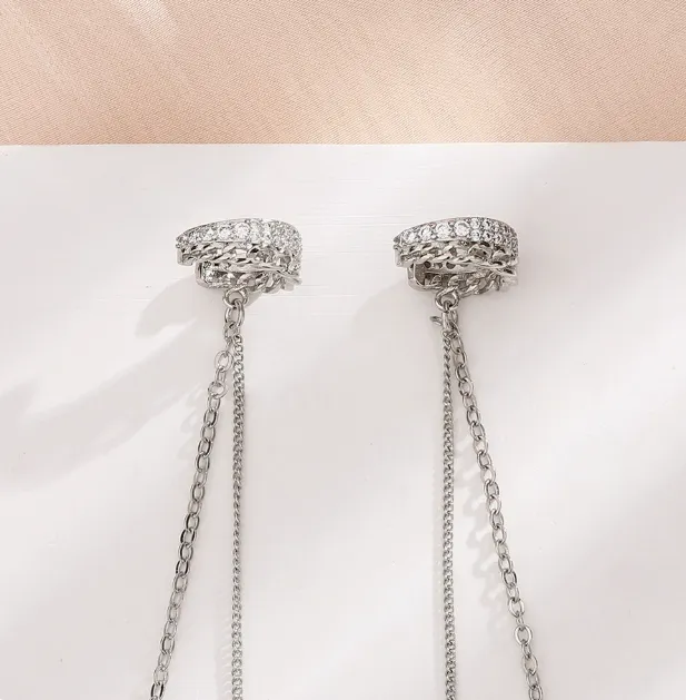 Tassel Chain Long Ear Clip Without Piercing One Style For Dual-wear