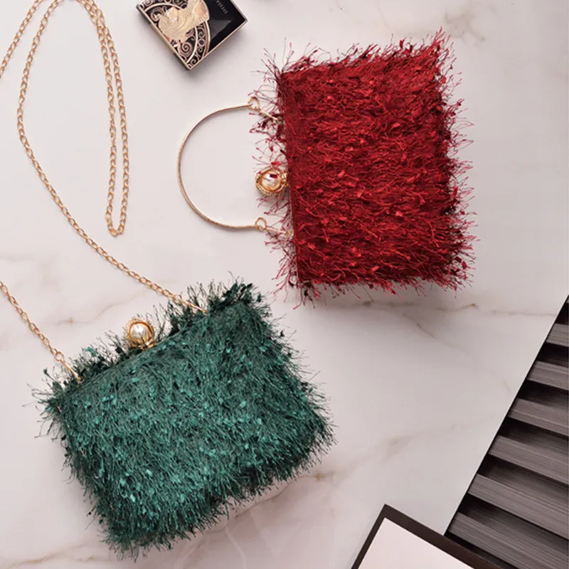 Tassel Handbags Women Dress Party Evening Bag Fashion Luxury Designer Square Bags Crossbody Shoulder Bag Ladies