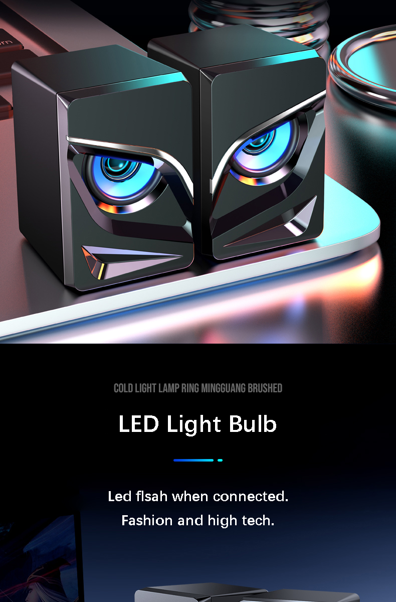 your desk, making them an ideal choice for limited spaces. The unique owl-eye aesthetic with vibrant LED lighting adds a modern and stylish