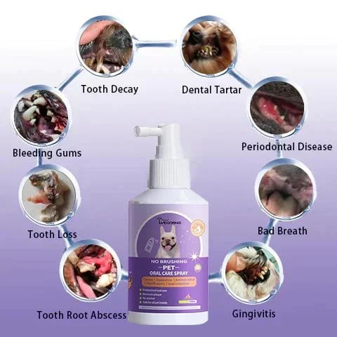 "I started to notice some discomfort in my dog's mouth His gums are red, appearing to have inflammation. And there is a buildup of tartar in his teeth. I suspect it's the buildup of tartar causing gum inflammation. My friend recommended this spray to me. After a few use, it really removes tartar buildup and addresses the inflammation in his gums. After the treatment was complete. His mouth was no longer painful and his breath was fresher. Good dental health is so important for pets and I'm happy that my dog was able to get the help he needed to maintain it"
