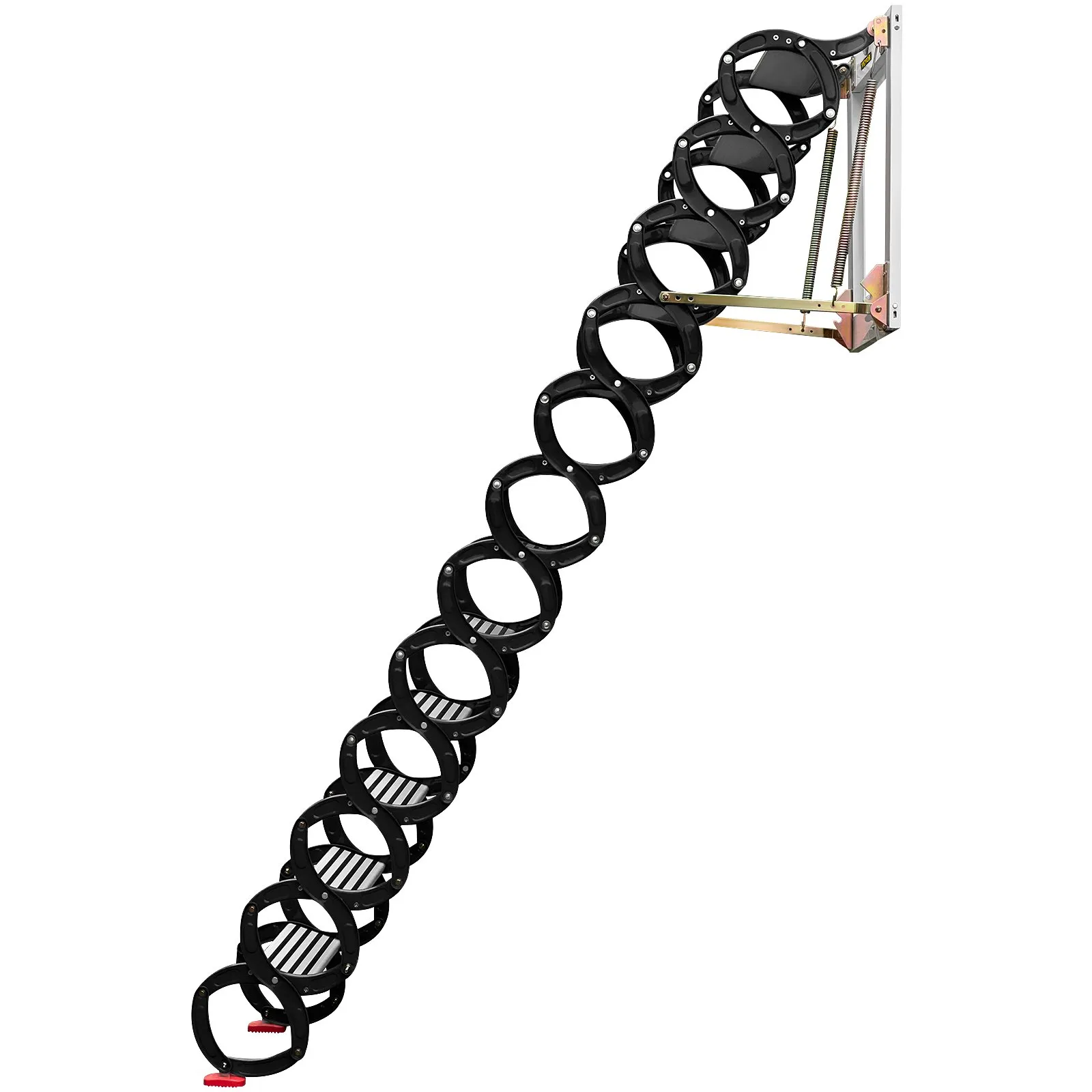 down. You can fold the stairs when not in use, saving a lot of space. It has a total of 12 stairs, up to 11.2 ft/3.4 m. Whether you are