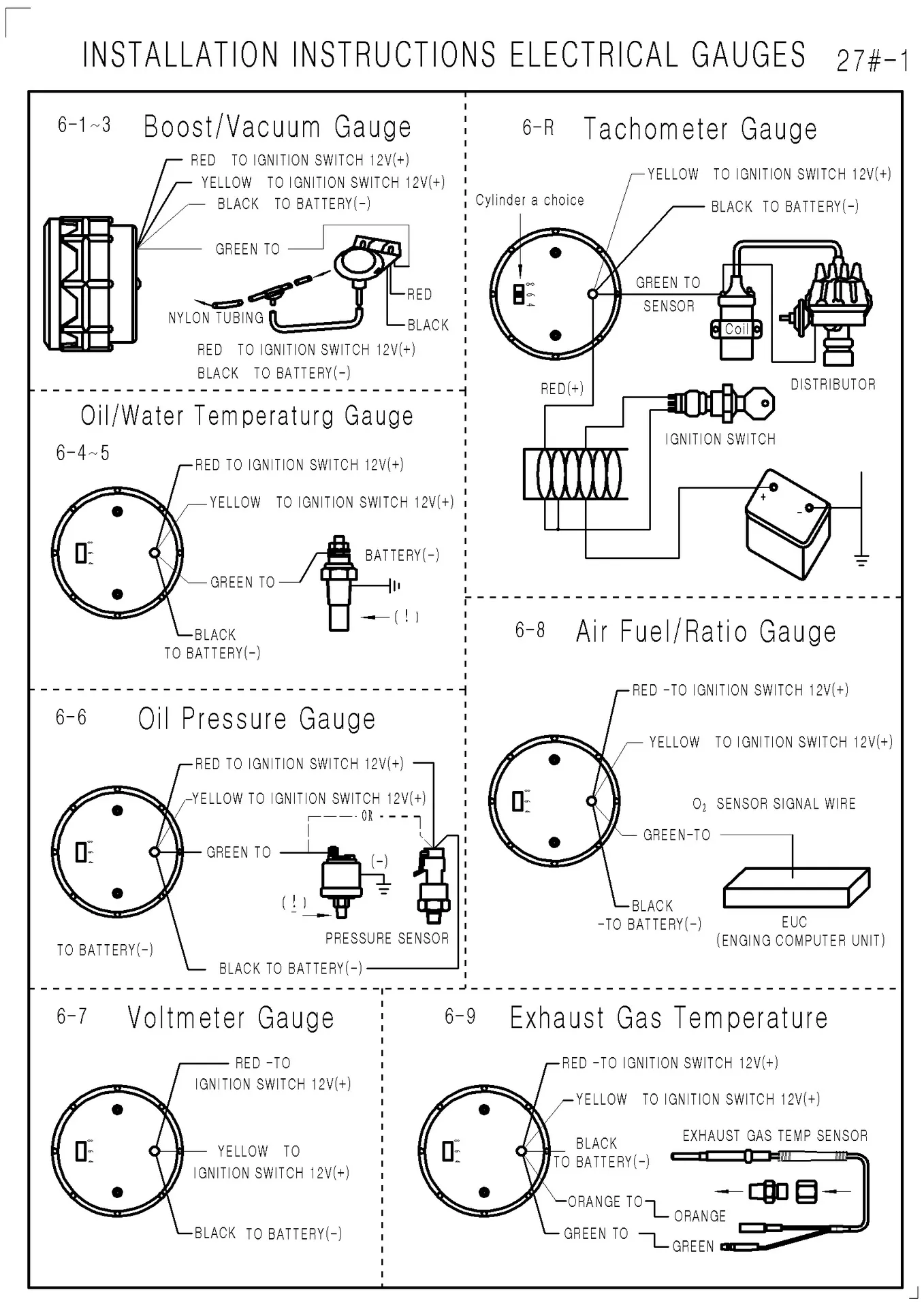Installation involves mounting the gauge in a dashboard panel or instrument pod and connecting the sensor to the thermal source via appropriate thread fittings. Wiring connects the gauge to the vehicle’s power supply and lighting circuits for illumination during night driving. Calibration ensures accurate readings and may be pre-configured or adjustable depending on model.