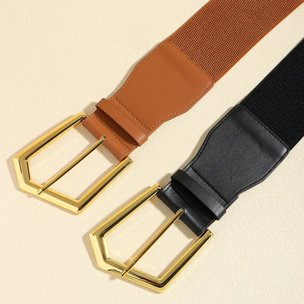 Temperament Ladies Elastic Black Stretch Metal Belt Fashion Embellished Coat Skirt Waist Cover