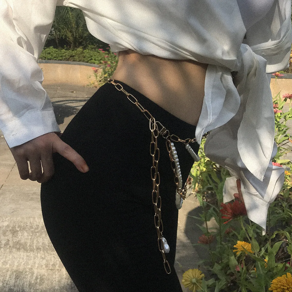 Temperament Multilayer Pearl Chain Tassel Waist Chain Woman