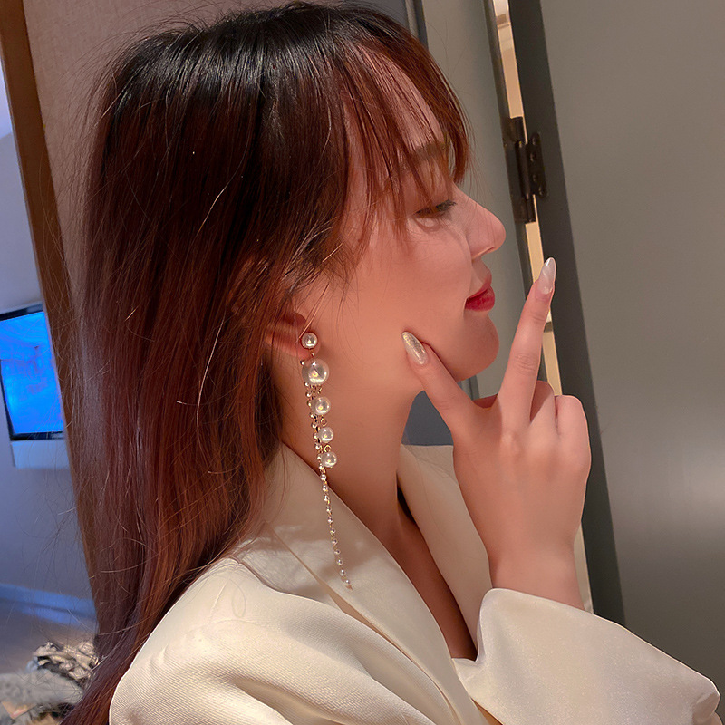 Temperament Pearl Tassel Long Earrings