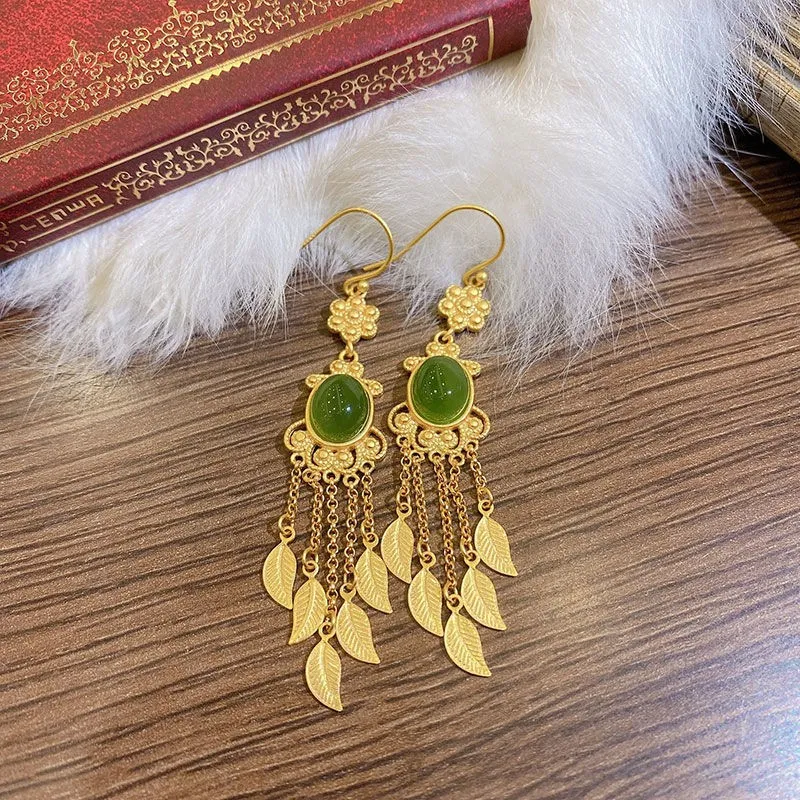 Temperamental Tassels Hetian Jade Feather Earrings – A Harmonious Blend of Elegance and Tradition