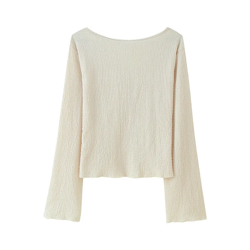 Texture Sense V-neck Long Sleeve Top & Baggy Straight Trousers Suit – Effortless Chic Comfort