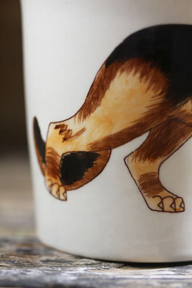 Thai Hand Painted Animal Mug German Shepherd Ceramic Cup