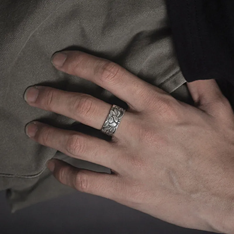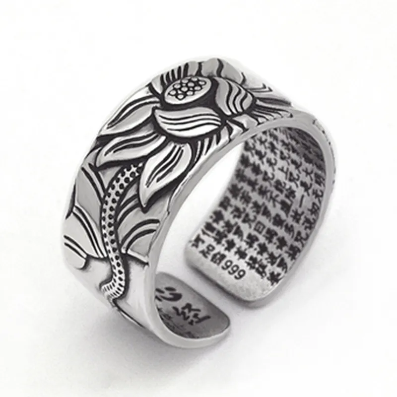 Thai Silver Black Men's and Women's Lotus Heart Sutra Ring: A Symbol of Spiritual Connection and Elegance